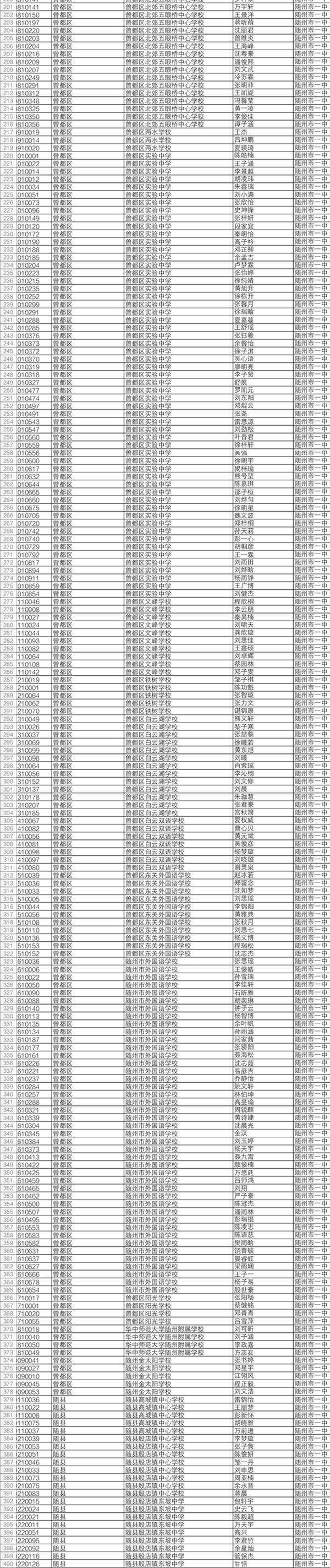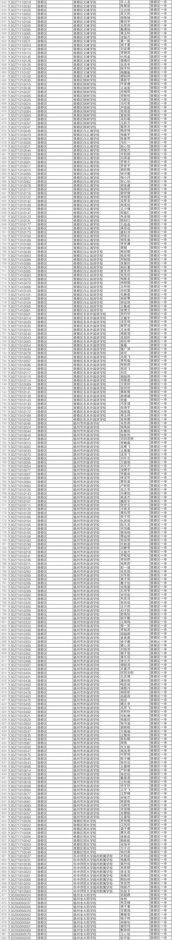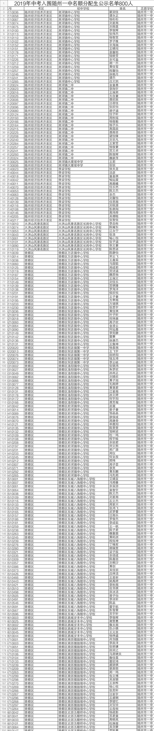 2019年中考于6月20日至21日举行。随州市有16884名应届初中毕业生报名参加中考,比去年增加2292人。近日,随州市教育考试中心发布了今年中考“名额分配”招生入围学生名单。
