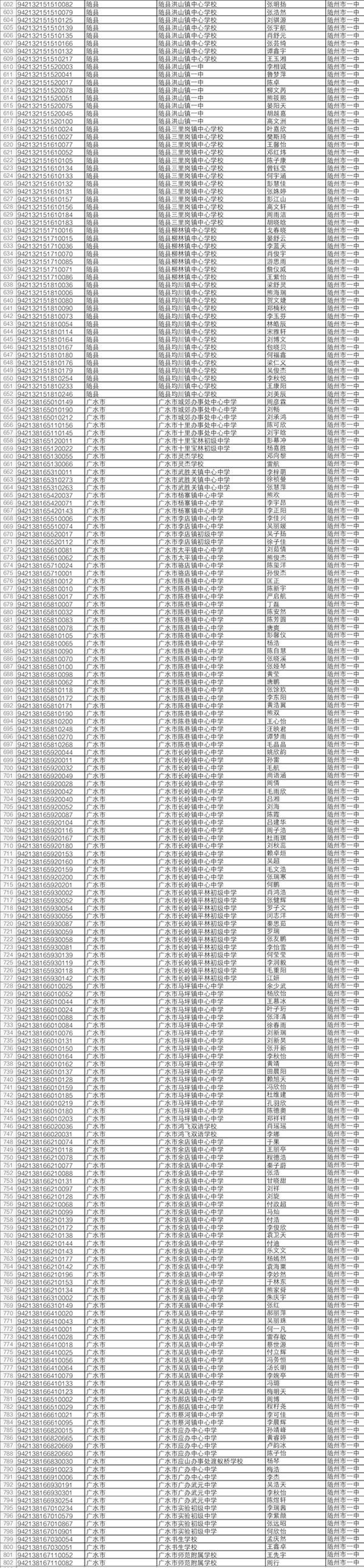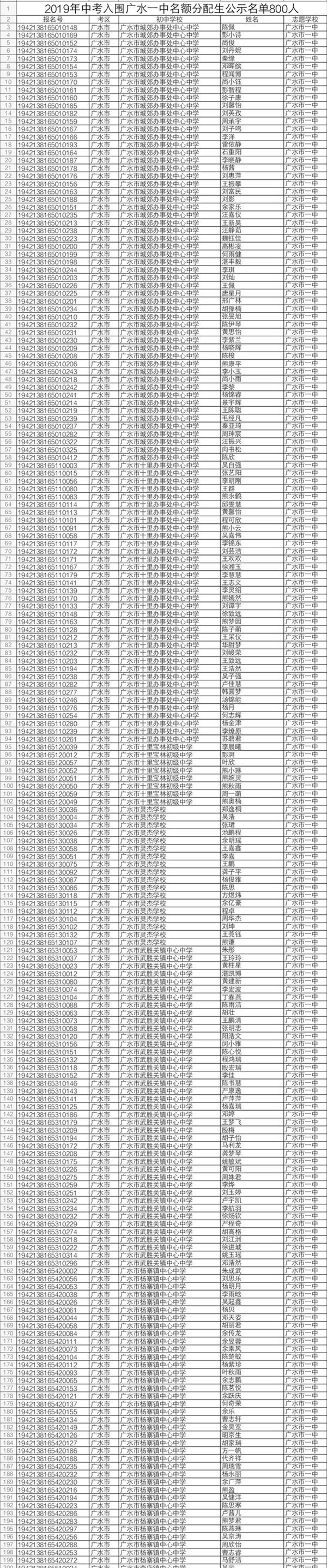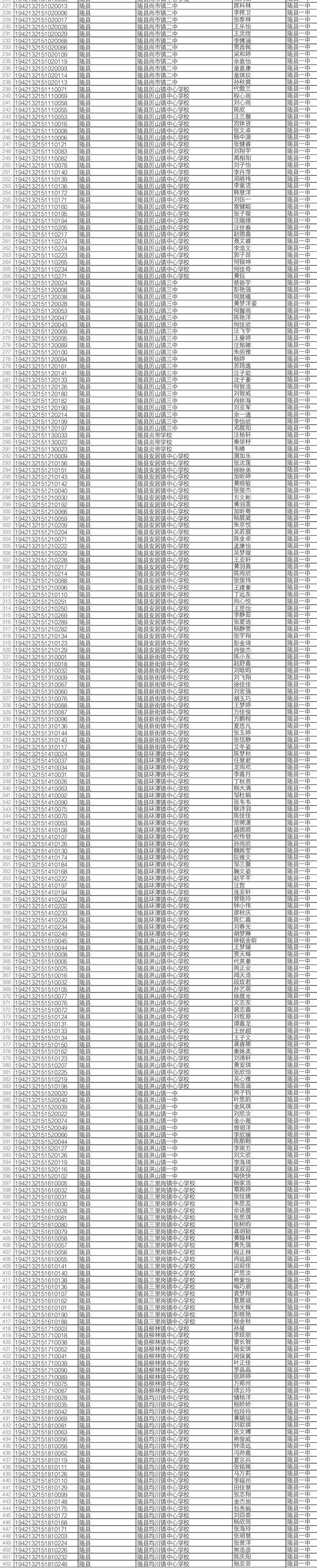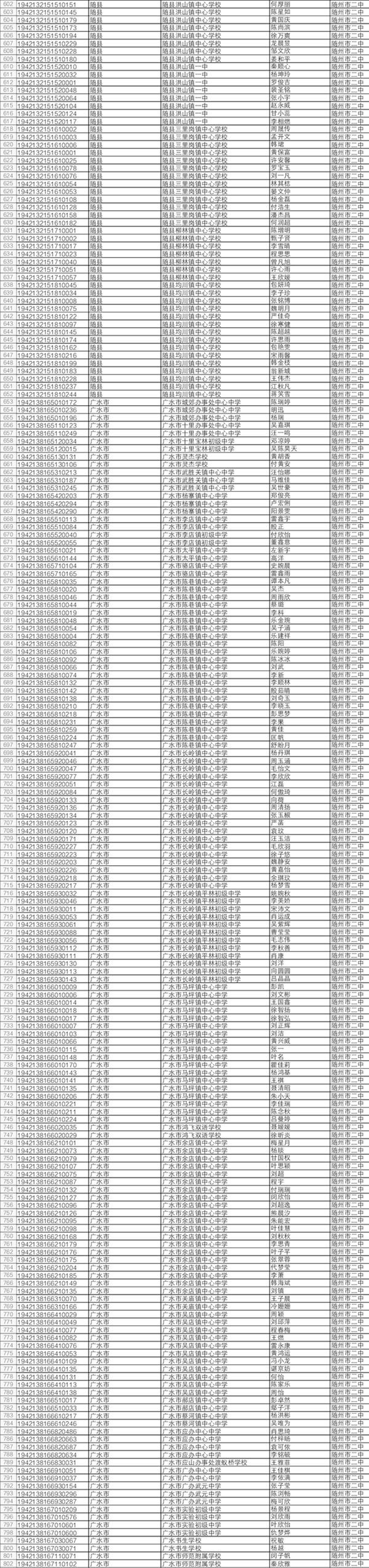 2019年中考于6月20日至21日举行。随州市有16884名应届初中毕业生报名参加中考,比去年增加2292人。近日,随州市教育考试中心发布了今年中考“名额分配”招生入围学生名单。