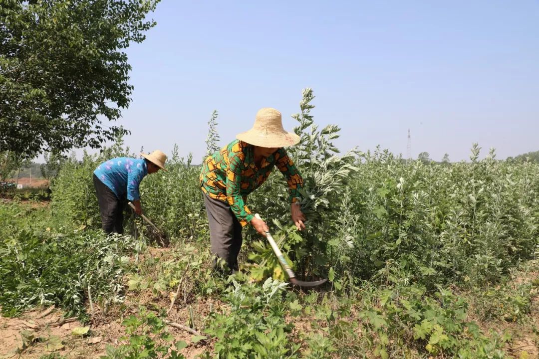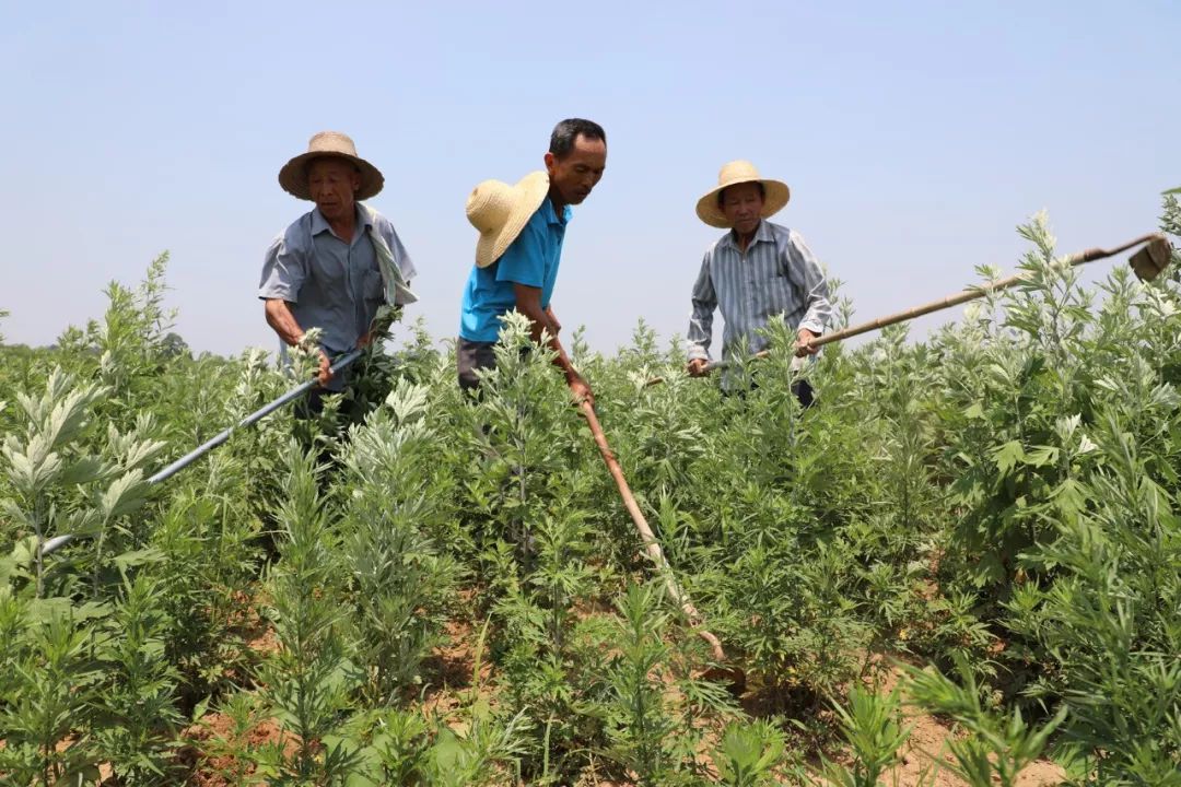 距离收割机不远的另一片地里,十几位村民正在为即将收割的艾草锄草。“基地建在家门口,在这里干活,既能挣钱又能照顾家人,工作生活两不误!”村民白友才高兴地记者说。
