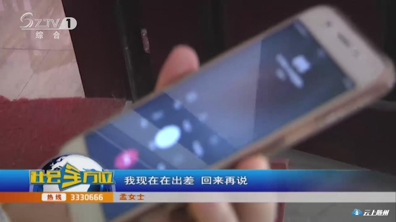 【采访】孟女士:我房间那个水印到底怎么弄,我现在在出差,回来再说,这个水印这么长时间了,是的呀,修好了都一年了。我现在不在家,回来再说,我不可能一直等你回来是不是。我现在不在家出了差回来再说,没听懂不在家。
