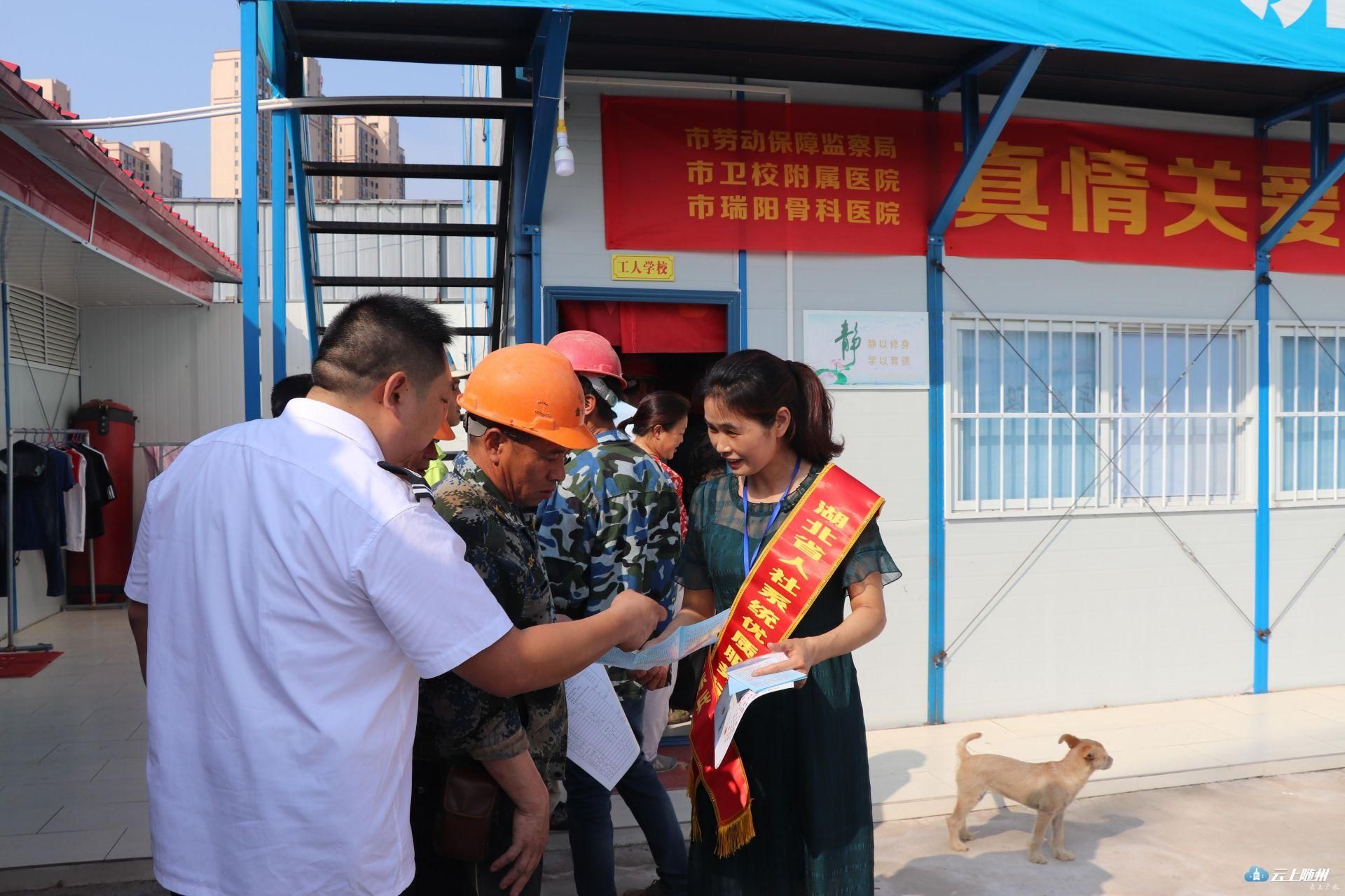 【同期声】广水市人力资源与社会保障局党组成员 熊斌:“农民工是城市建设的重要力量,平时劳动强度大,又是疾病的多发群体。这次我们组织真情关爱农民工,免费体检进工地的活动,让广大农民工在百忙之中关爱自己的身体。同时,我们人社“秀玲”政策服务队也进驻工地,进行政策宣传,让广大农民工更多的了解劳动保障法律法规,增强他们的法律意识,更好的保护自己,同时,我们劳动保障监察局加大执法力度,确保工资无拖欠。”