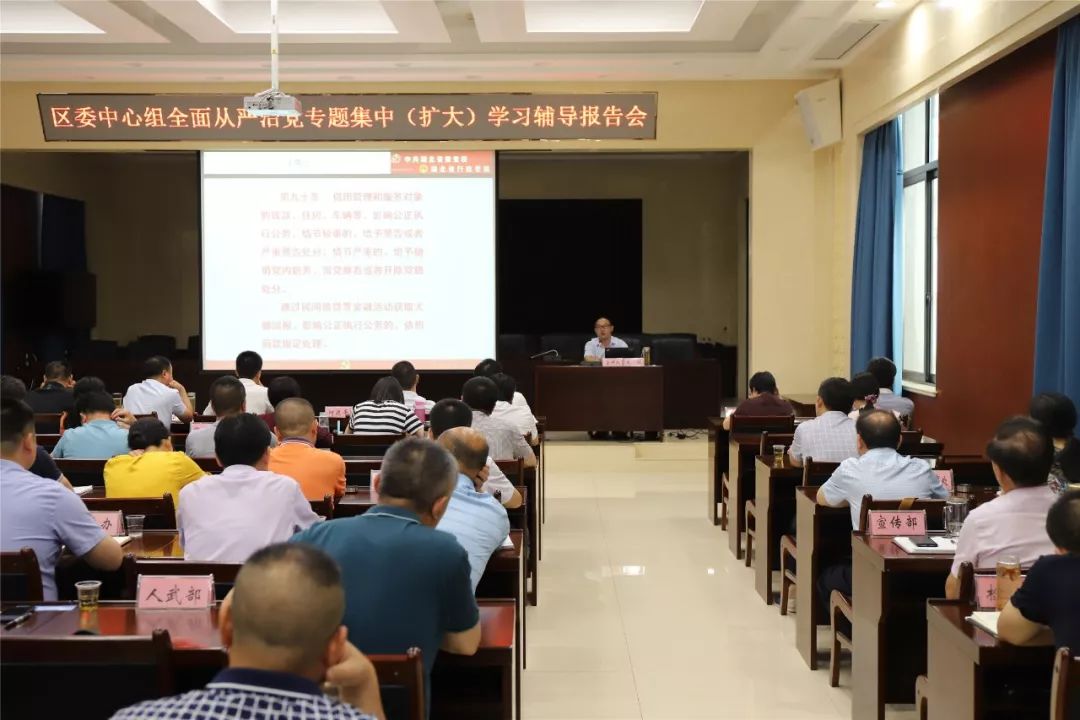 6月26日,曾都区委中心组全面从严治党专题集中(扩大)学习辅导报告会召开。省委讲师团成员,省委党校政法教研部副主任、教授王辉应邀作辅导报告。