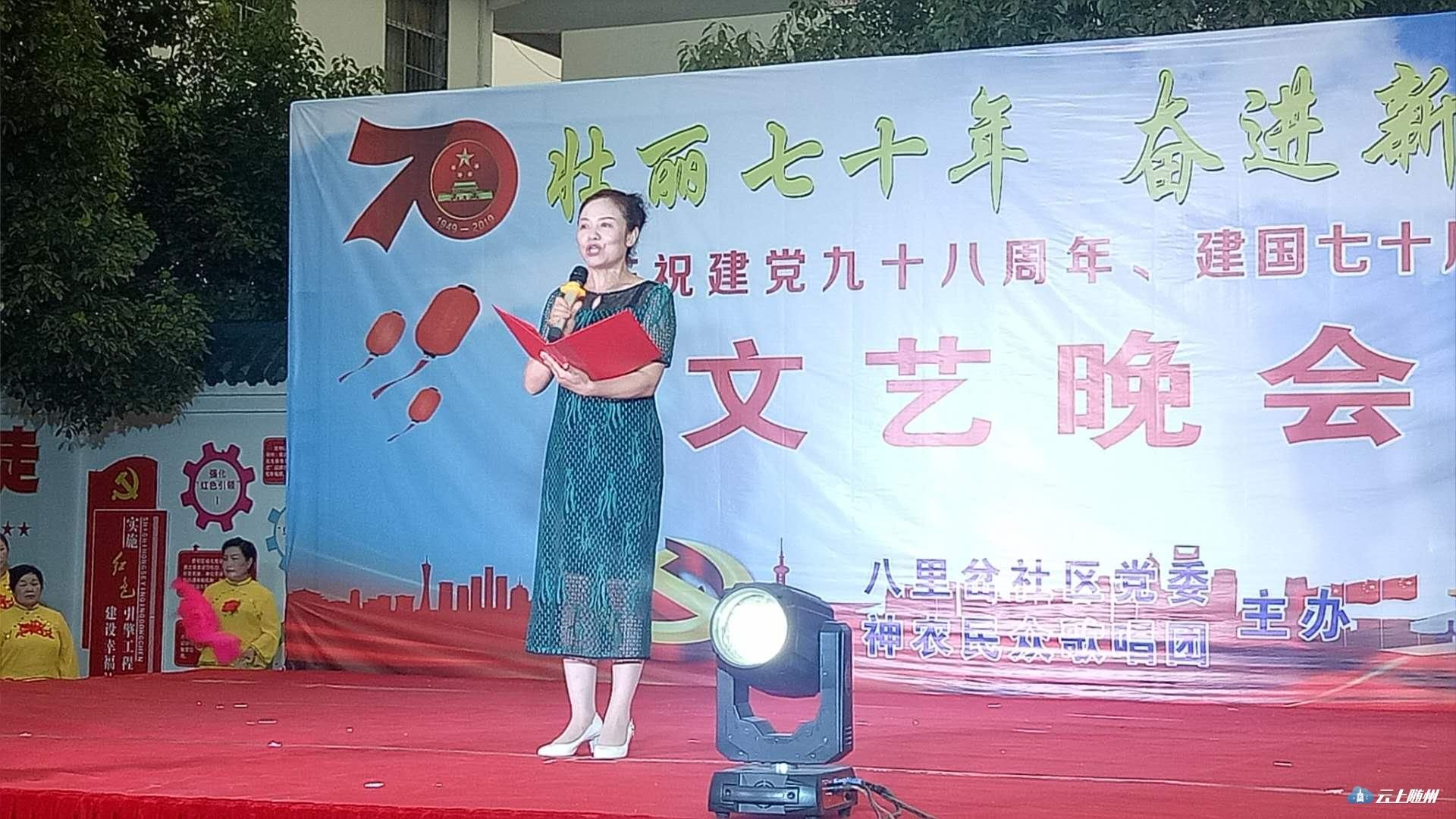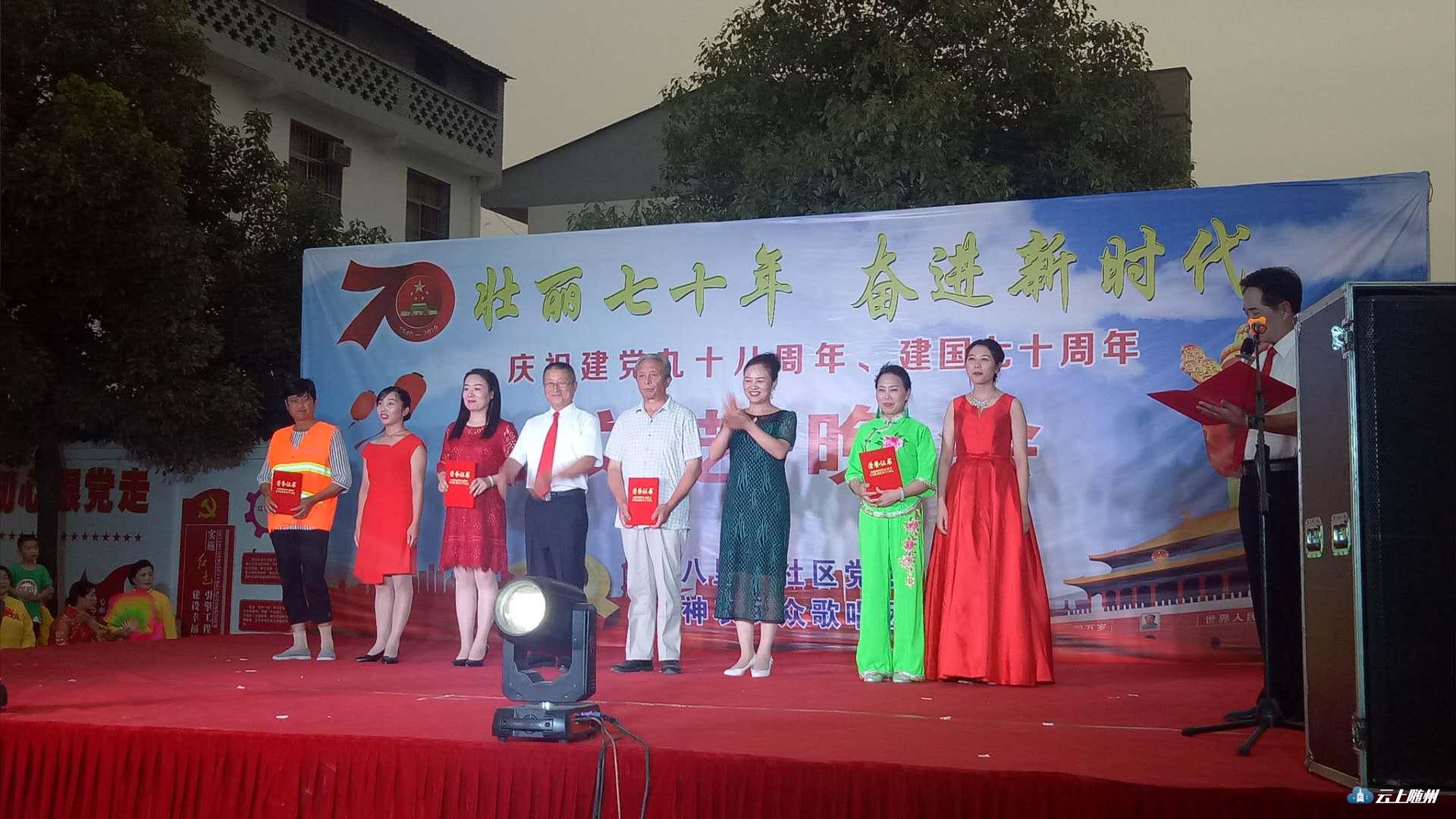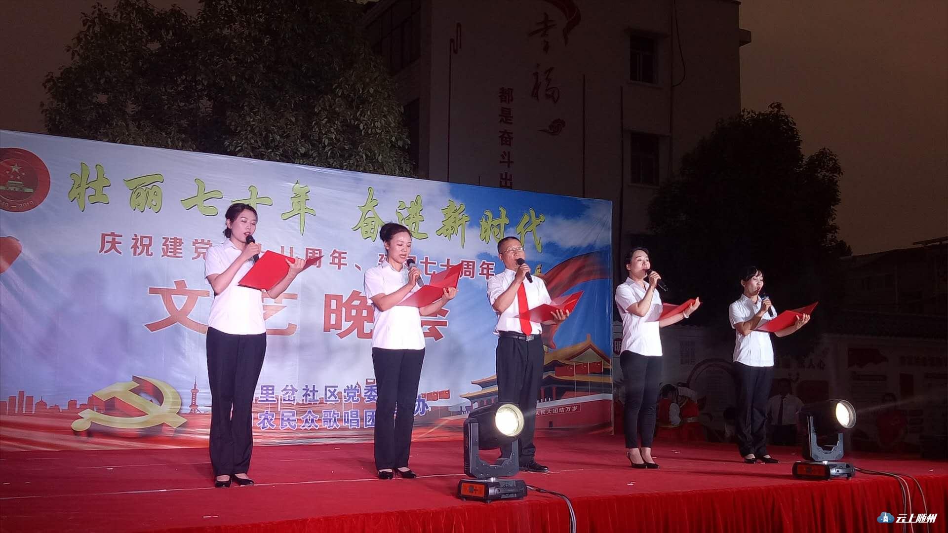 6月26日晚,北郊八里岔社区举行庆祝“壮丽七十年 奋进新时代”文艺晚会。社区居民齐聚一起,用自编、自导、自演的节目庆祝建党九十八周年。