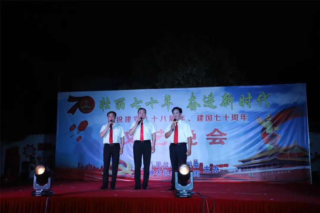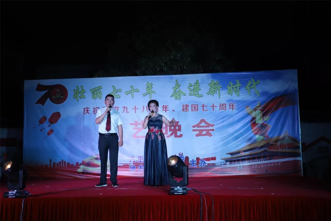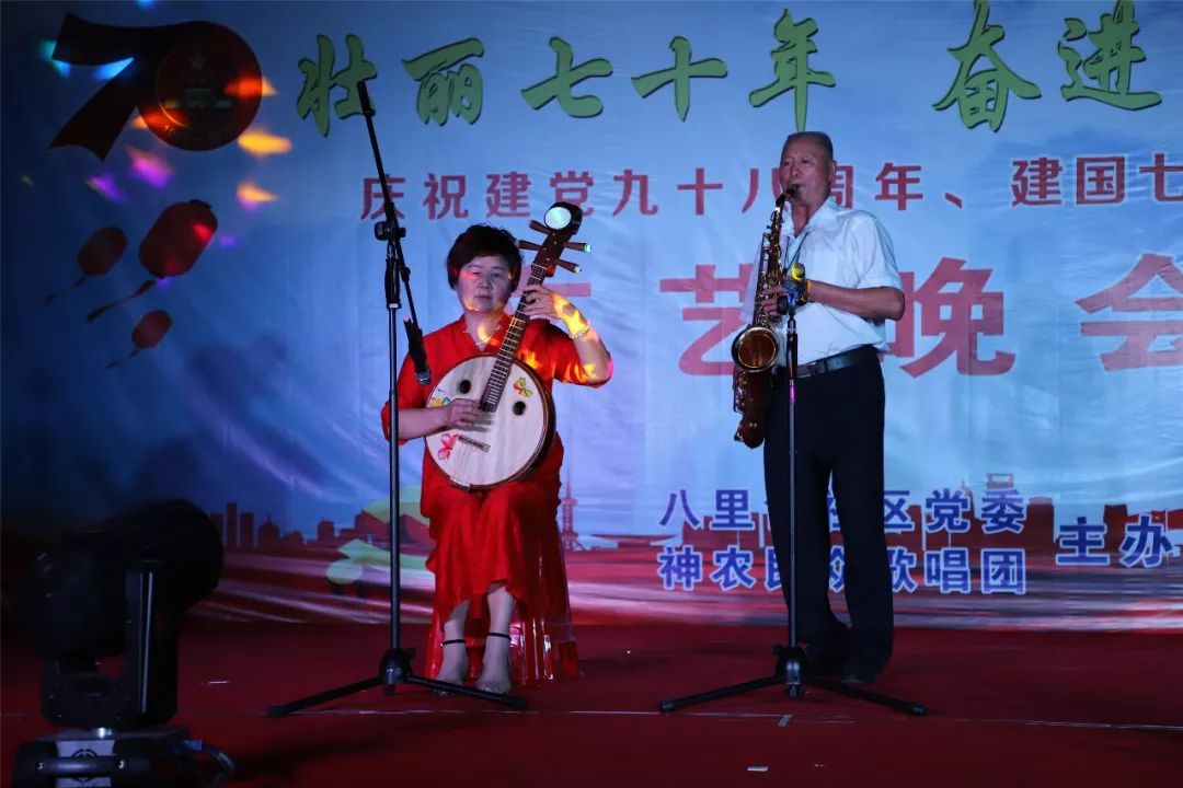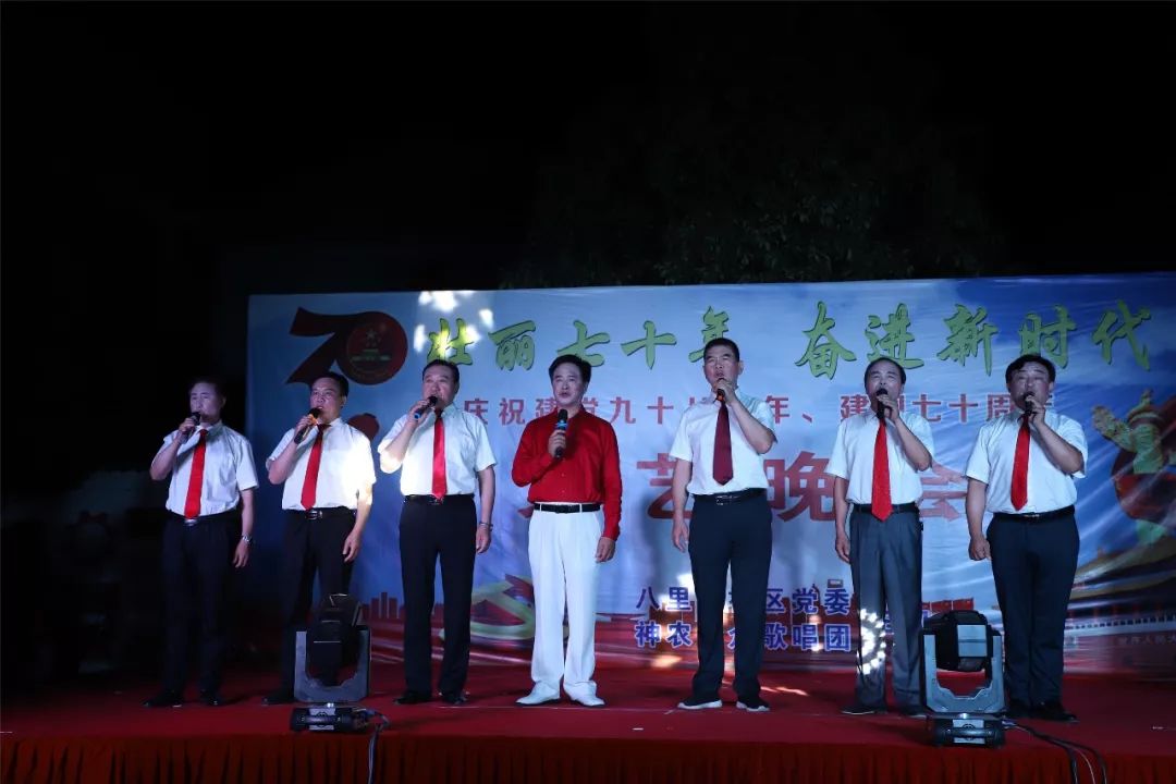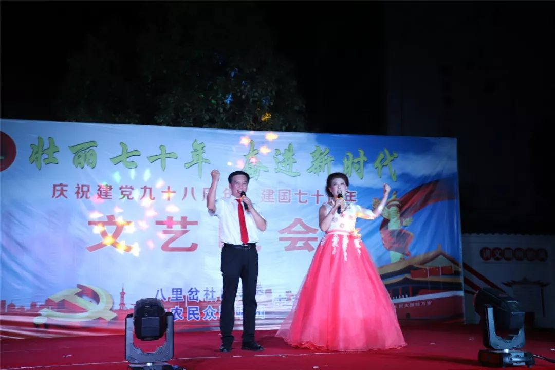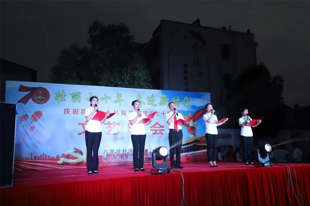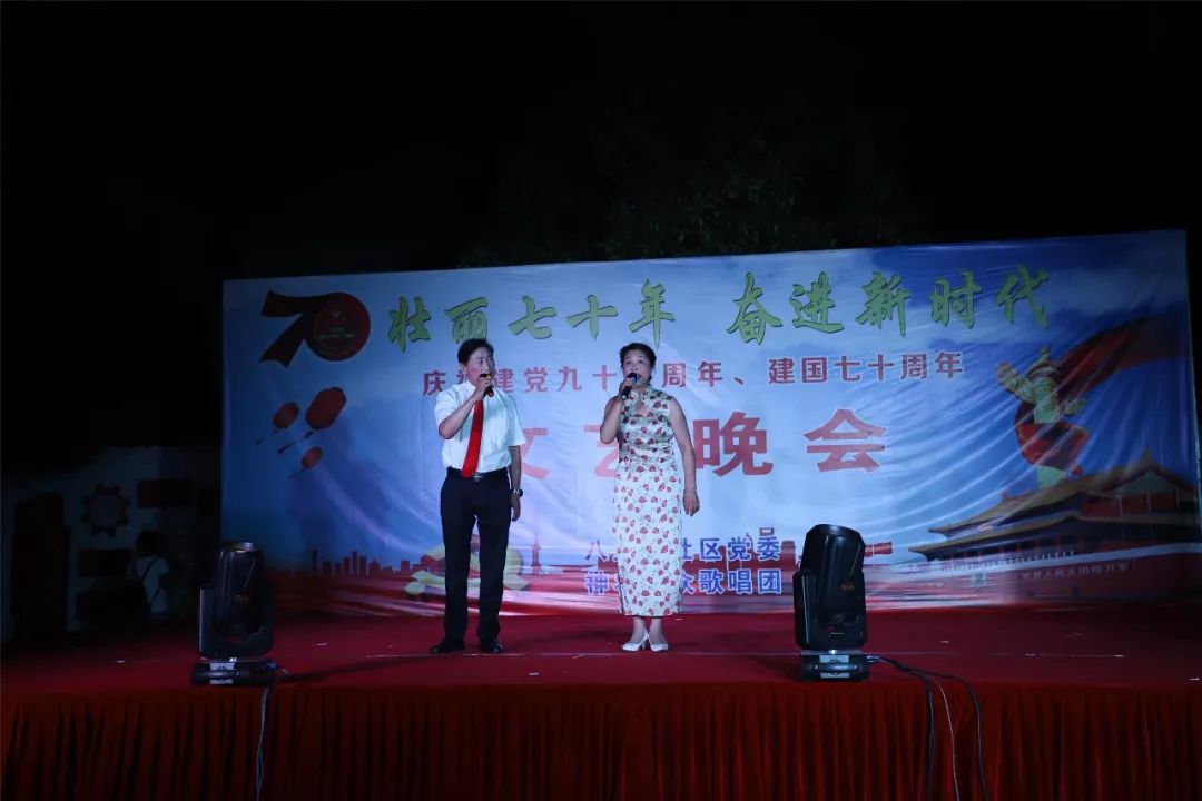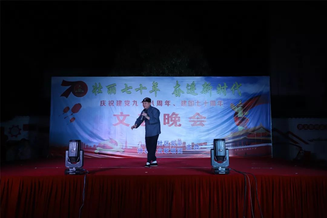 6月26日晚,北郊办事处八里岔社区举办“壮丽七十年·奋进新时代 ”庆七一迎国庆暨优秀党员(居民)表彰文艺晚会,社区优秀共产党员代表与居民欢聚一堂,共同庆祝党的生日。