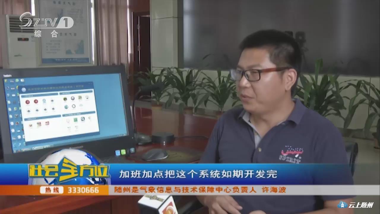 【采访】随州是气象信息与技术保障中心负责人 许海波:当时我们接到这个任务之后感觉压力非常大,因为各个部门建设的系统非常多,怎么能把各个系统都融入到气象部门的系统之内,当时从技术方面时间方面都非常紧,我们科室人员克服种种困难,牺牲节假日休息时间,加班加点把这个系统如期开发完。