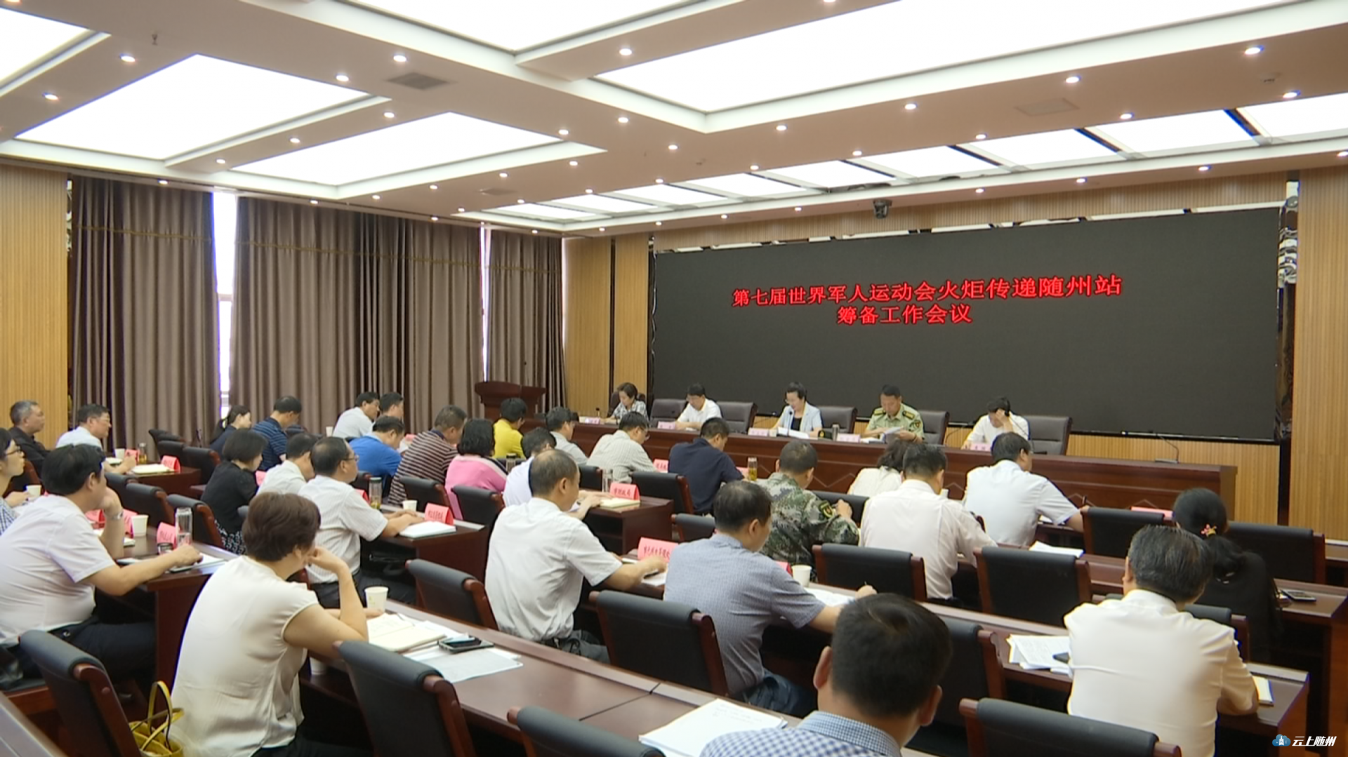 会议传达了第七届世界军人运动会火炬传递工作全省动员部署会精神。据悉,今年10月18日,举世瞩目的第七届世界军人运动会将在武汉举行。作为军运盛会的重头戏、序幕战,军运会火炬传递将于8月1日在江西南昌正式启动,9月22日进入湖北境内,开始17个市州的接力传递。