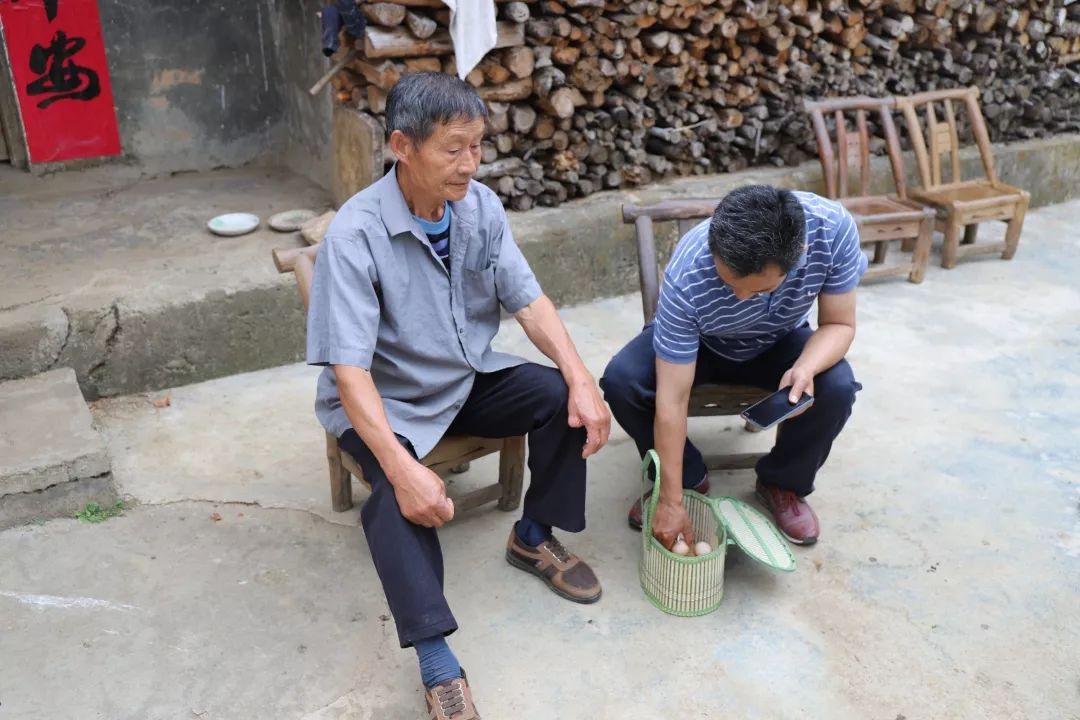 刘传国是位腿脚不方便的独居老人,养了50只土鸡下的蛋吃不完也卖不掉。当天,这几十个土鸡蛋就被杨中平挂到平台上销售,晚上就有客户下单成交。快递签收后他立即把第一笔收入送到了贫困户的手中,又从附近几户村民家中带走了几百个土鸡蛋。一传十,十传百,珠宝山的电商生意又火了起来。