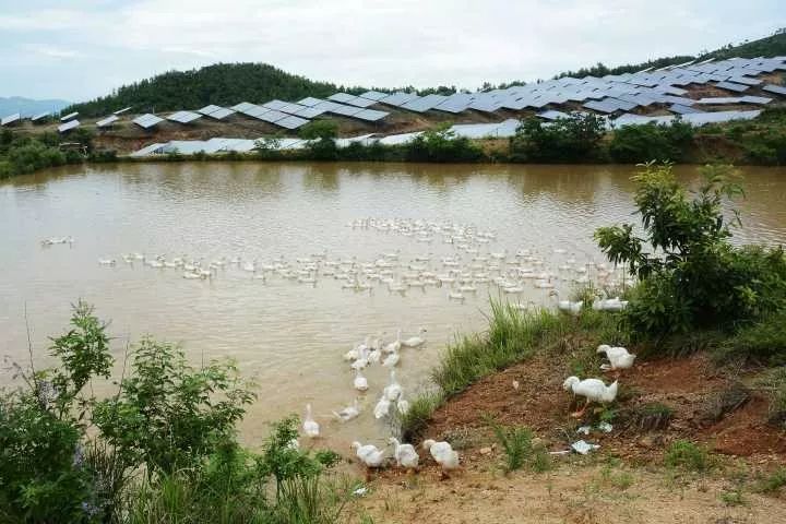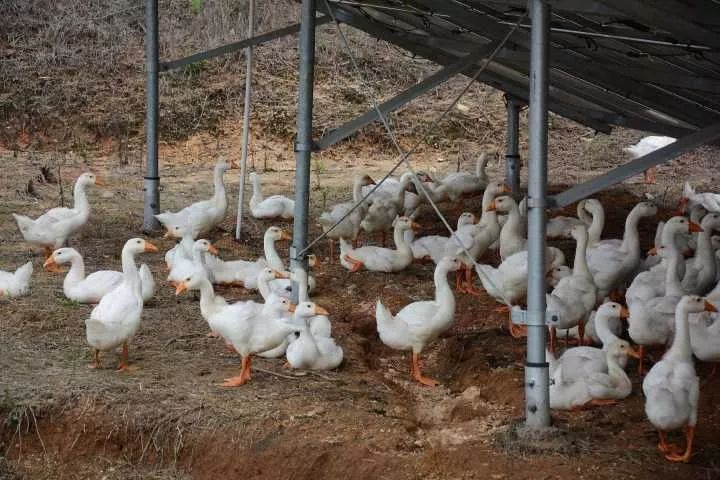 就这样,在村委会的帮助下,老徐的1500只鹅苗被安置在了光伏发电场区,既有草吃,也有水游,还能在太阳能电磁板下遮阳。在老徐的精心看护下,这群鹅一天天健康长大。