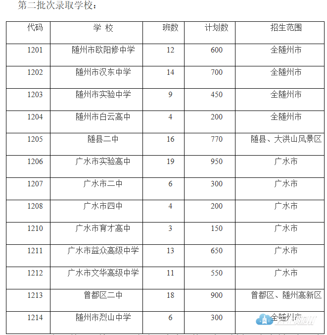 2019年随州各高中招生计划已出炉