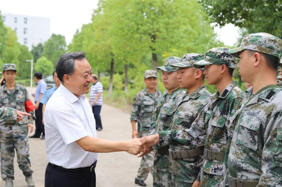 7月11日,曾都区区委书记何运平到随州职业技术学院,看望慰问在这里参加2019年随州军分区民兵专业分队训练的曾都区人武部专业分队民兵。