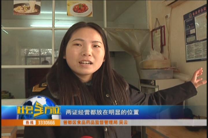 【采访】曾都区食品药品监督管理局 吴云 我们以前,很多小餐饮都是没有证的,你看我们现在都是两证经营,有食品经营许可证和健康证,两证经营都放在明显的位置,这就是合法经营,让大家都能知道这家店有相关证件,是个放心的环境。