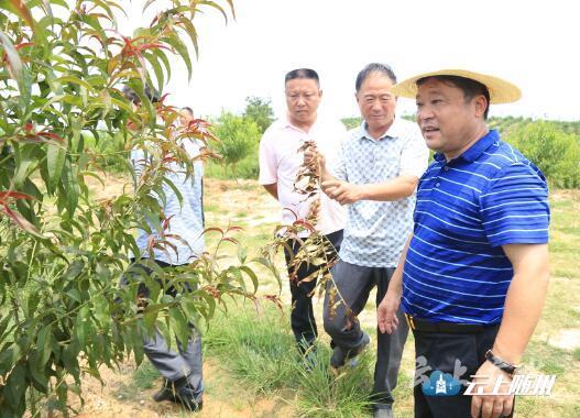 魏以金查看桃树长势,现场指导村民种桃