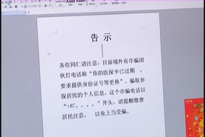 (采访:双龙寺社区网格员 刘彬彬)有很多居民接到陌生的电话,说您的医保卡已过期,要求提供身份证等更换,我们经过向医保局核实,属于诈骗电话,目前我们在小区通过张贴告示,口头宣传等方式来提醒居民不要上当受骗,希望大家相互转告。