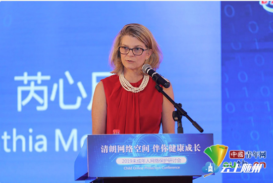 芮心月(Cynthia McCaffrey)在致辞中高度赞扬了中国政府和各界为保护儿童健康成长所做的努力。她表示,儿童网络保护是国际互联网治理中的一个关键问题,联合国儿童基金会一直致力于在全球范围内推动这一问题的有效治理。她希望,在社会各界共同为防止儿童受到网络伤害而努力的同时,也应该思考如何通过技术手段,保证儿童合理使用网络的权利,使他们成为积极的“数字公民”。