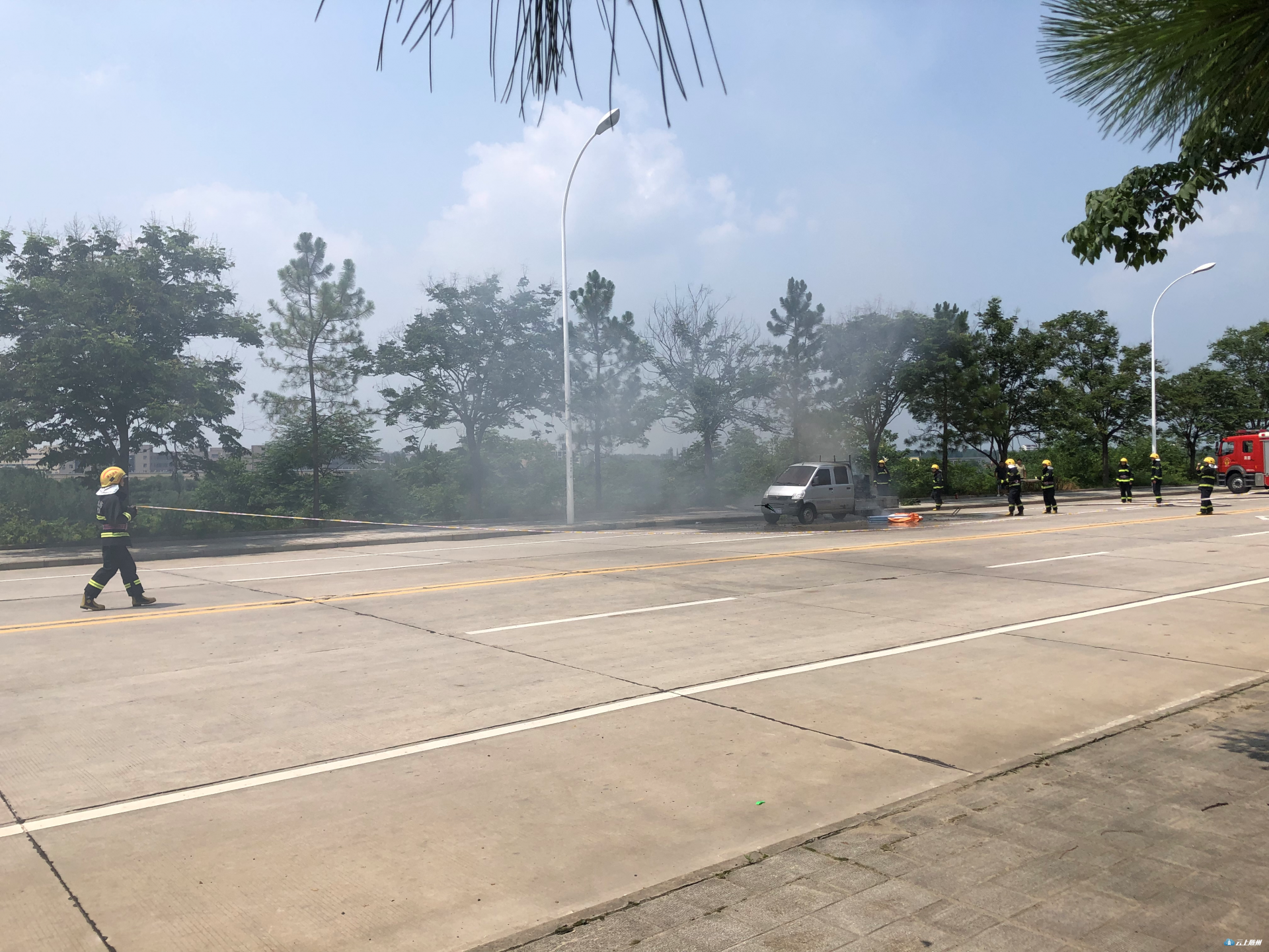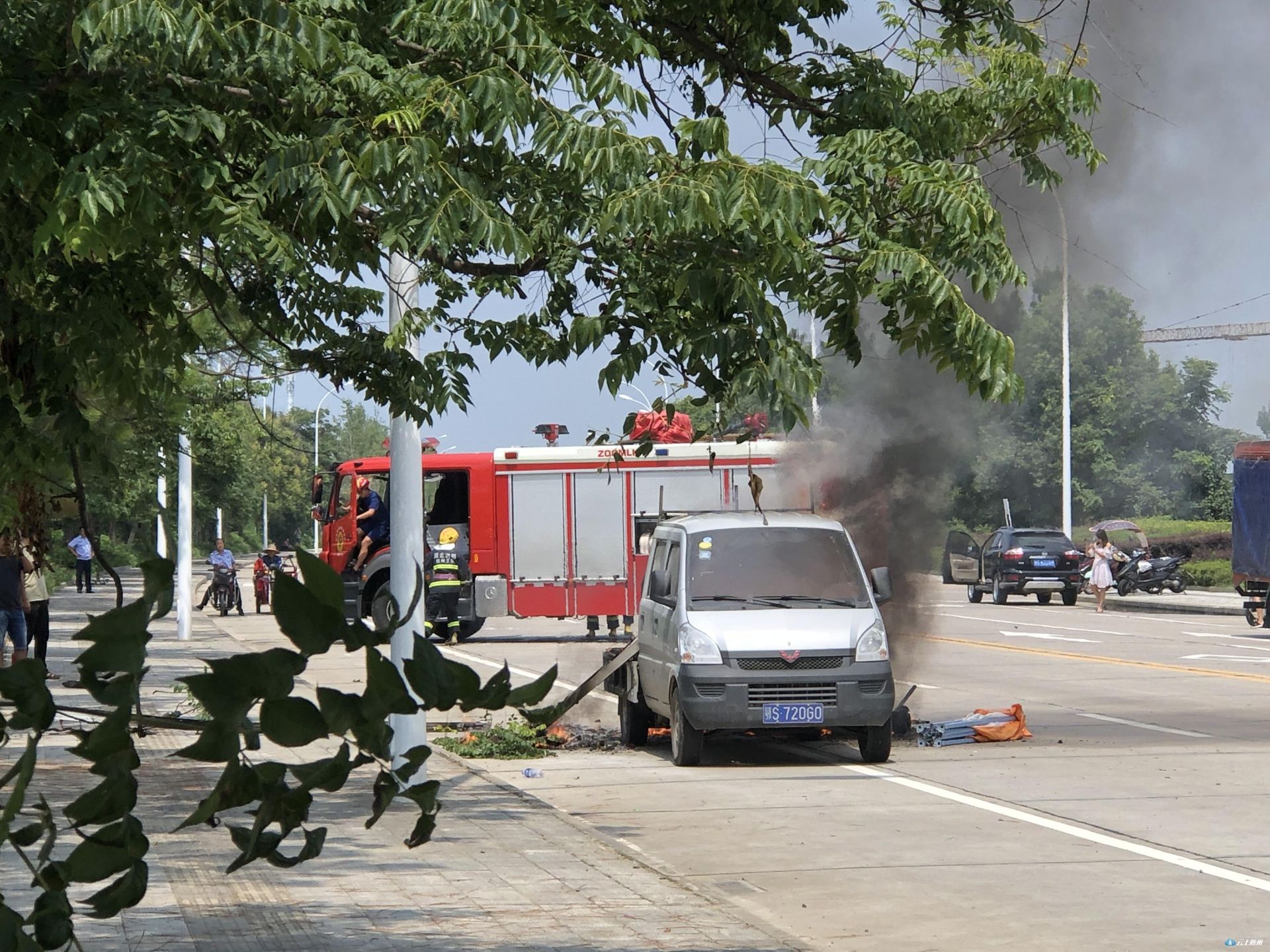 随州欢乐世界附近一辆小货车发生自燃,接到电话消防部门第一时间赶到将火扑灭。