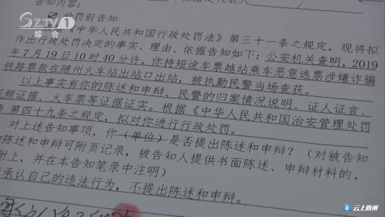 为进一步整治影响铁路运输秩序的突出治安问题,确保铁路运输安全和旅客平安出行,随州车站派出所根据公安部统一安排部署,在辖区内全面展开“平安站车路,金盾护你行”专项行动。7月19号,民警在火车站出站口查获了一名“买短乘长”的旅客。