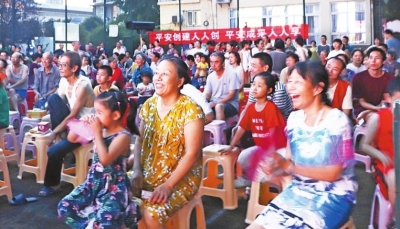 21日晚,纳凉文艺汇演精彩节目引得现场居民开怀大笑