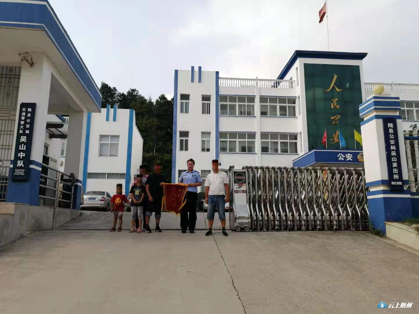 7月22日,吴山镇居民彭某良带着家人来到随县公安局吴山派出所,他将一面印有“心系百姓 为民解忧”的锦旗送到民警手中,感谢民警全力帮助,使他们一家终能团聚。