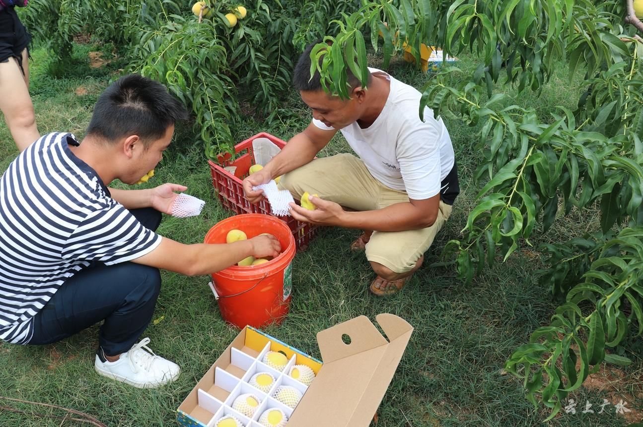 “今年黄桃都是个顶个的大,长势喜人啊!”基地负责人冯祥山带领着村民边采摘边说。这片300余亩的黄桃,于近日开始陆续成熟,冯祥山在王子店村和双岗村招聘了一些村民,安排他们采摘、包装,人均每天可收入100元。