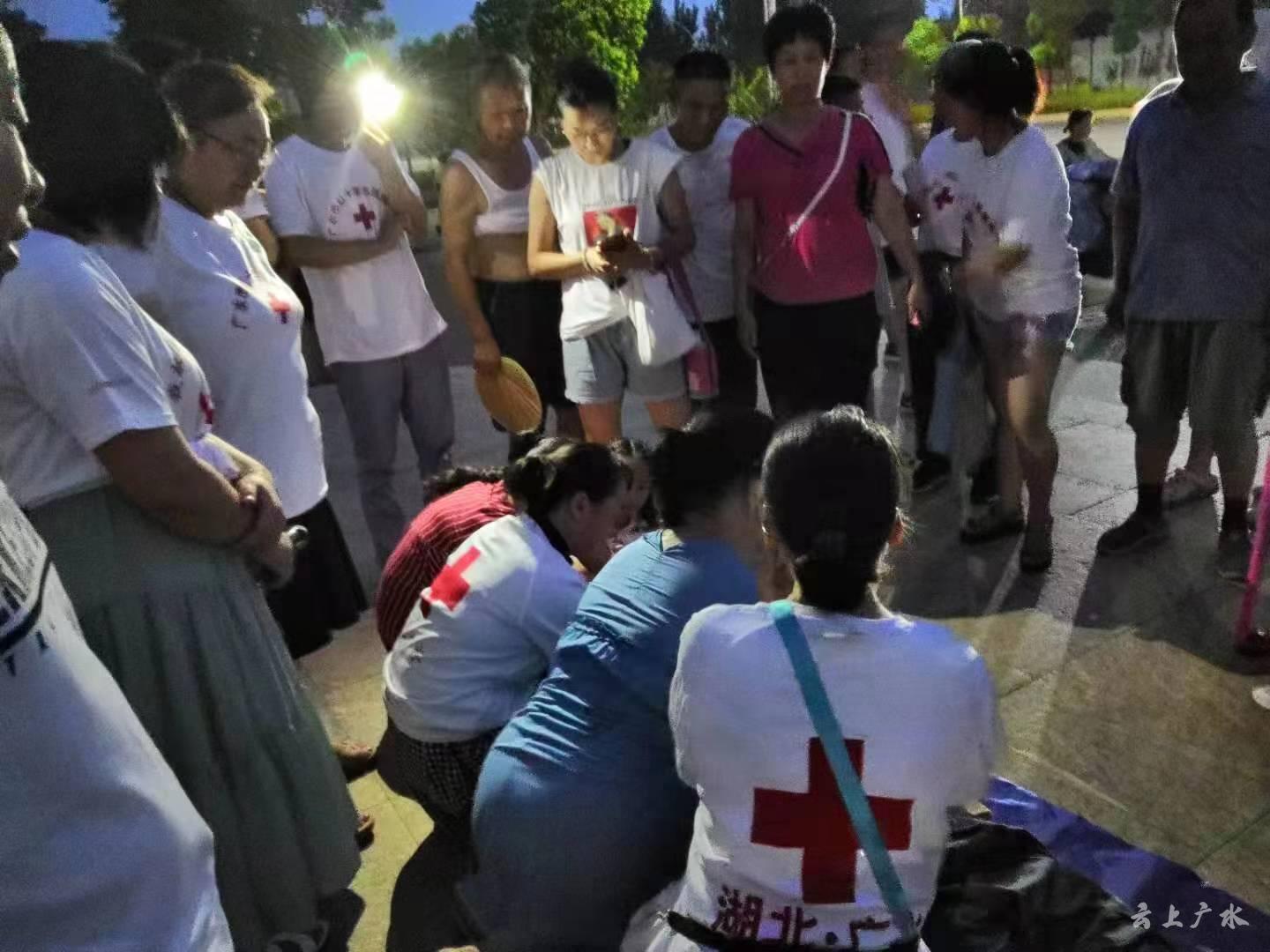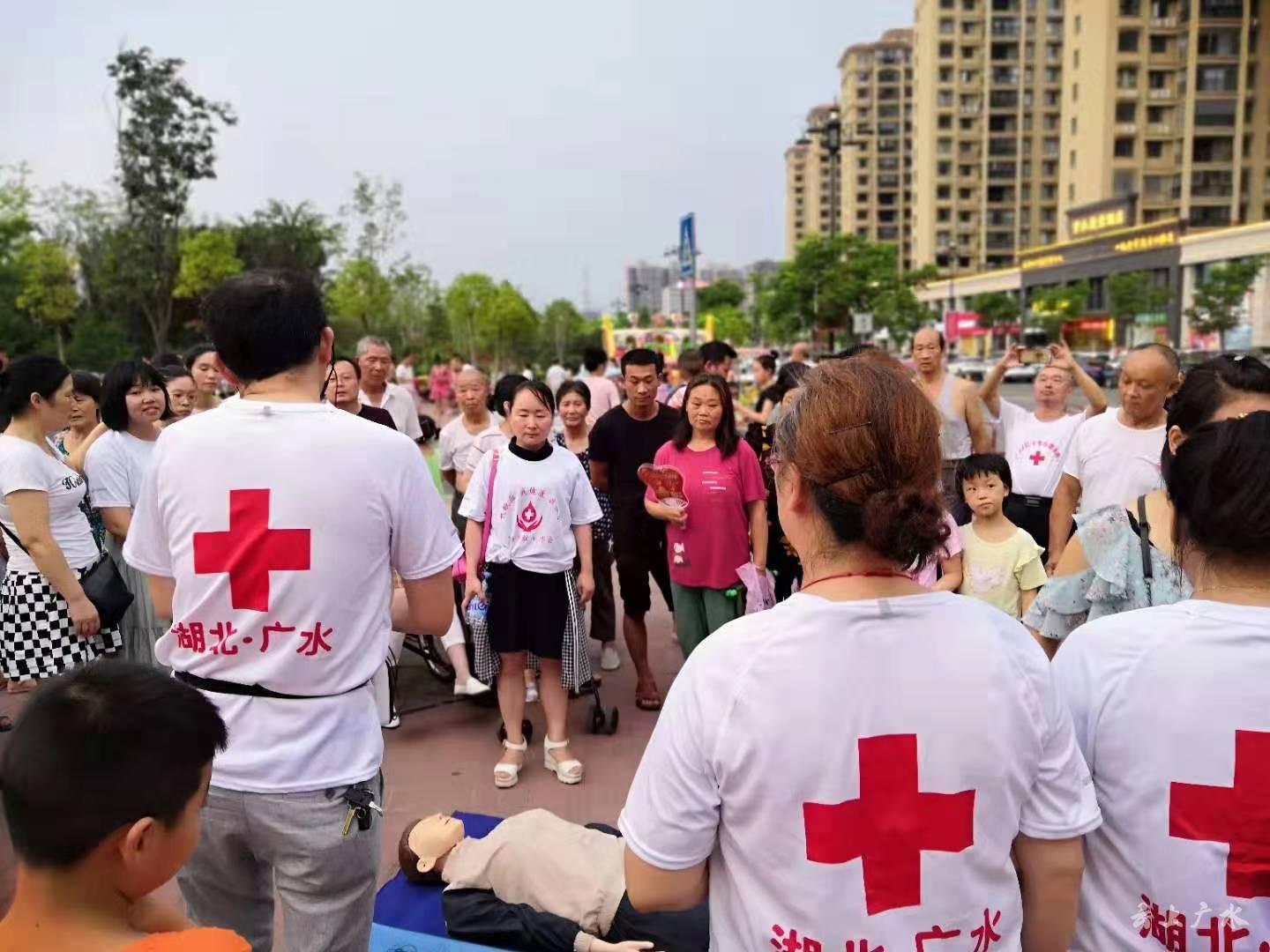 7月23日晚七时,热浪袭人,广水市红十字会的18名志愿者准时来到滨河公园的两岸又一次开展“溺水急救和心肺复苏”知识路演。