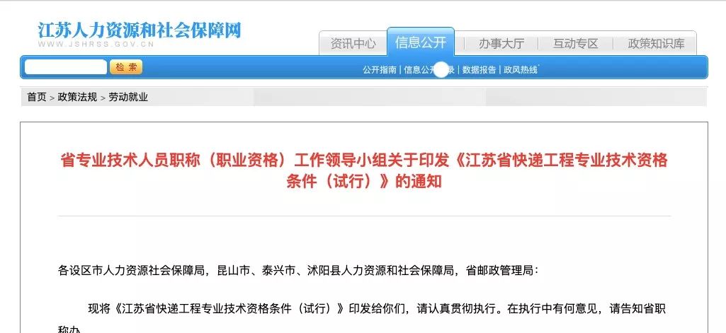 江苏省人社厅和江苏省邮政管理局从去年6月便开始酝酿起草方案,同年底出台《江苏省快递工程专业技术资格条件(试行)》(以下简称《条件》)。随后,500多名快递从业者申报,最终,296人获评初级职称,5人获评中级职称。