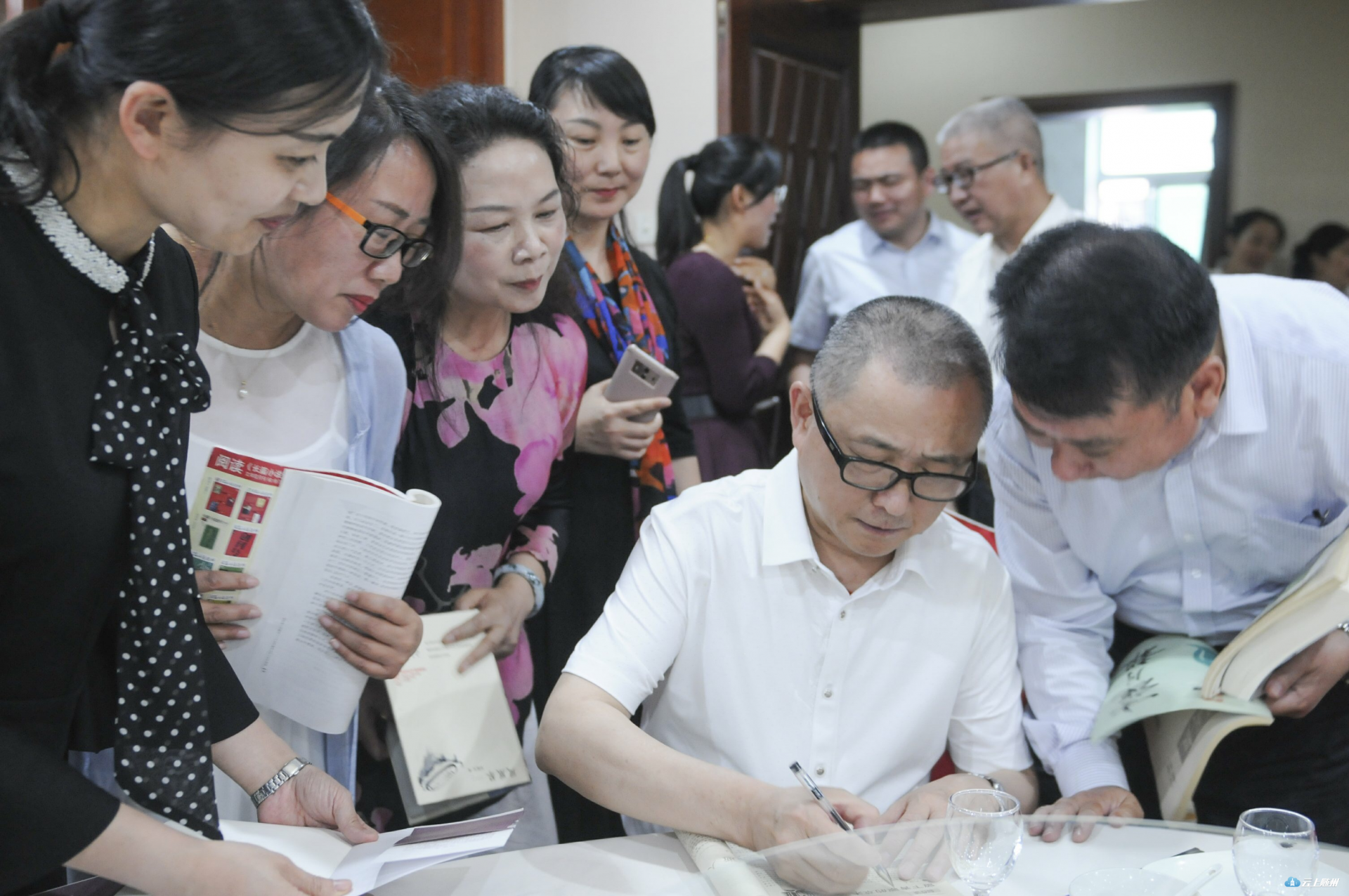分享会上,朗诵者们一边现场朗诵着刘醒龙的作品,一边和作者探讨作品所表达的思想和情感,现场互动十分活跃。不仅线下气氛高涨,在线上,刘醒龙作品朗诵分享会视频被上传到湖北新媒体老大——长江云APP后,得到了广大网友们的追捧,短短几天点击观看超过200万人次。一起来看看。