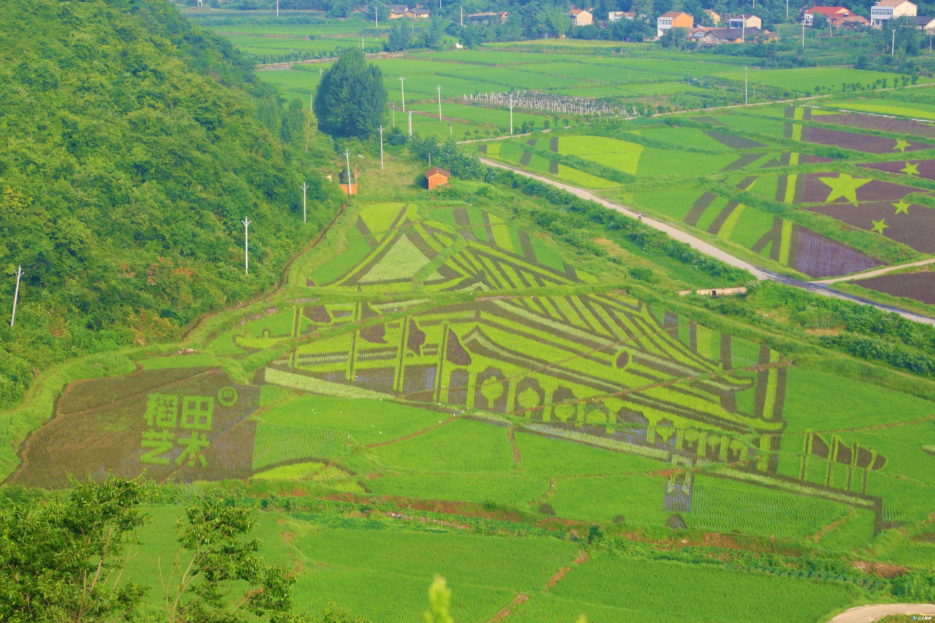 以大地为纸,以彩稻为墨,随着气温的升高,随州大洪山风景名胜区的“稻田艺术”已呈现出绚丽的色图案,正式进入观赏季节。