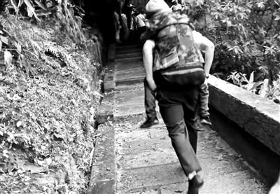 下午快2点时,连代华在换岗时,与同事遇到一个体力不支的老人,老人大概60岁左右,也有晕厥的现象。连代华便与同事轮流背了老人一段路,把老人背了上去。“当时看到老人家随行的女子正在打电话报警,我和同事过来的时候,刚好碰见她们了。”连代华说。