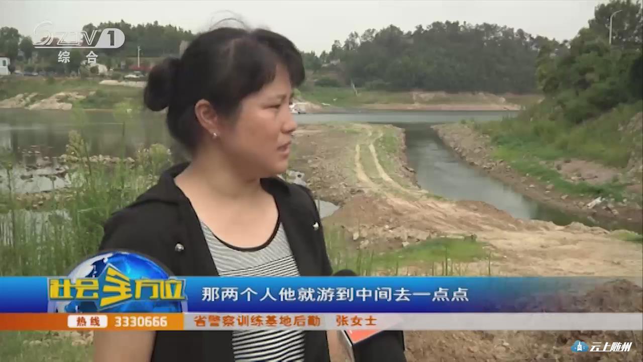 【采访】省警察训练基地后勤 张女士:晚上七点半的样子,我散步回来在我们单位的菜园,先看到两个人在水库旁边坐着聊天,只听见外地的声音;当我再看第二次的时候,一个人他就下水游泳去了,我一看他会游泳我就没在意;当我第三次看的时候,那两个人他就游到中间去一点点,他们在下面嬉水,我以为是嬉水,扑通扑通的声音,我就也没有在意。