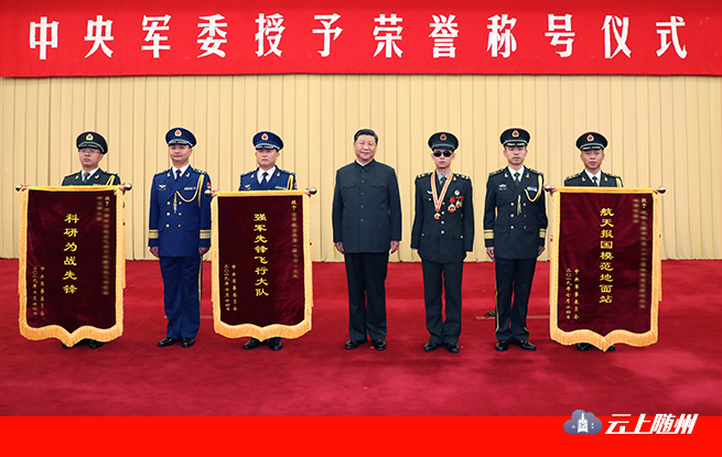 随后,习近平向获得“强军先锋飞行大队”荣誉称号的空军航空兵某旅飞行一大队、获得“航天报国模范地面站”荣誉称号的63798部队地面设备站、获得“科研为战先锋”荣誉称号的63837部队某室,分别颁授奖旗。