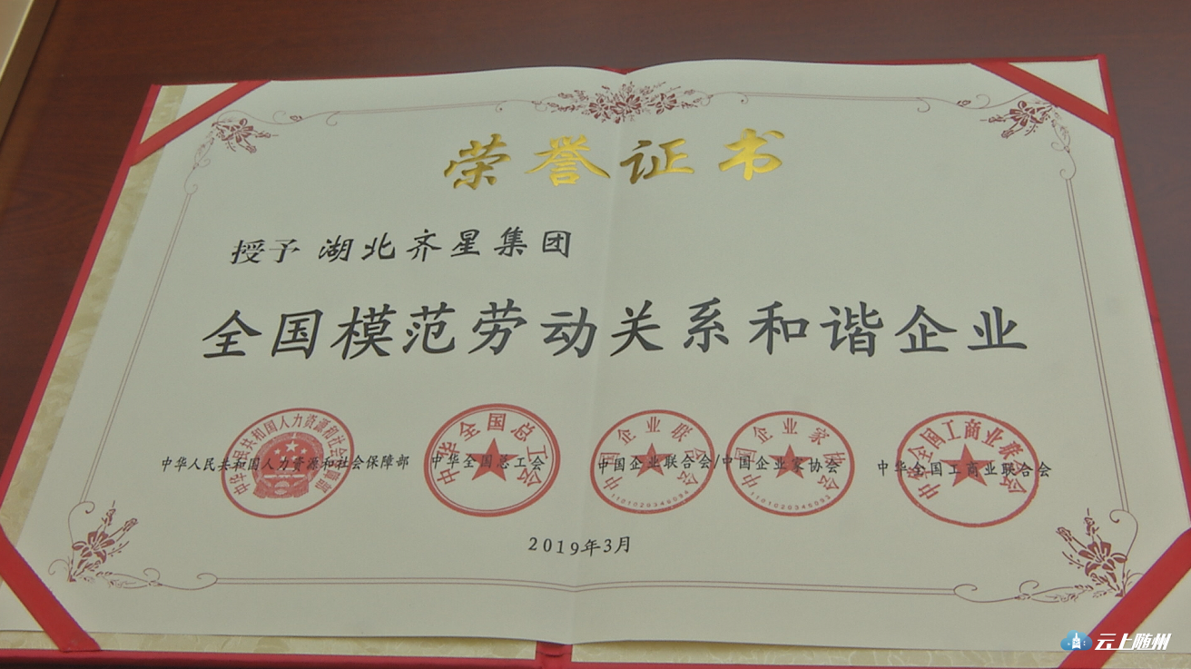 今年7月,我市齐星集团被授予“全国模范劳动关系和谐企业”称号。8月2号,市人社局来到齐星集团,为企业授牌。