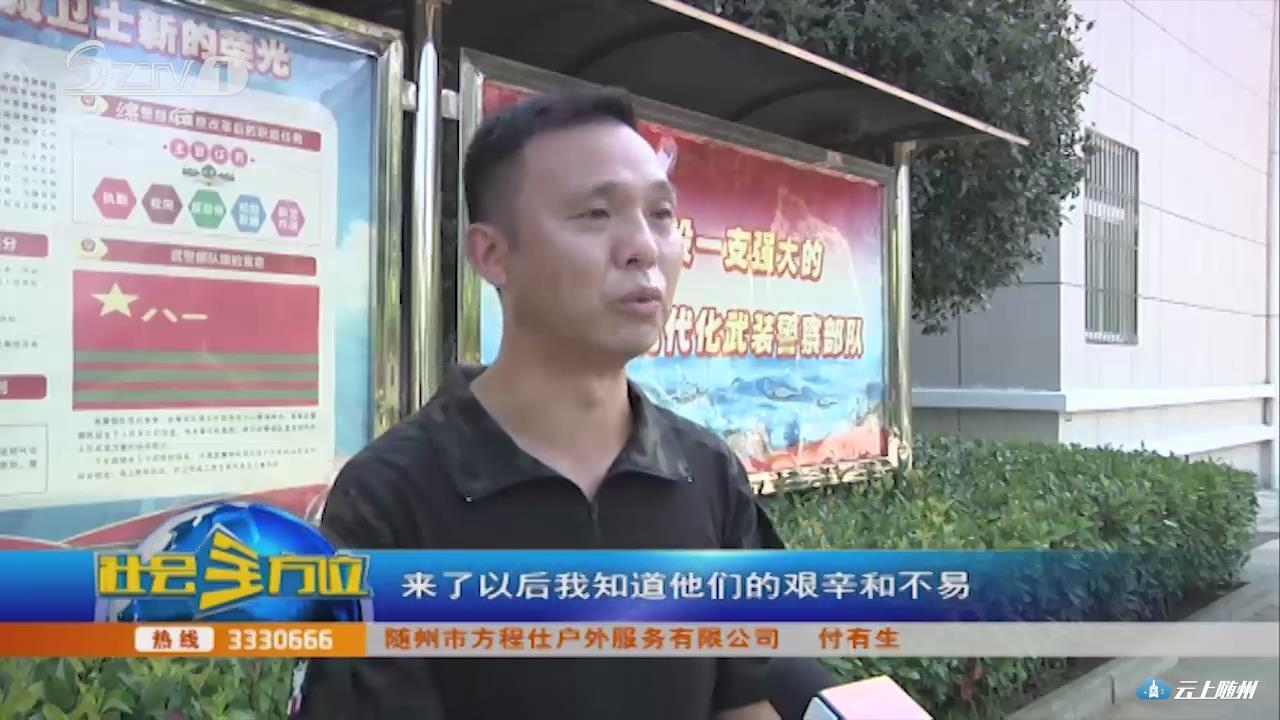 【采访】随州市方程仕户外服务有限公司 付有生:因为我曾经在部队里面也是战斗员、一线带兵班长,回到地方后从事户外拓展公司,与这个行业有点类似。来了以后,我知道他们的艰辛和不易,我们过来学习一下他们军人的优良传统和优良作风,来不断地鞭策我们退伍军人。