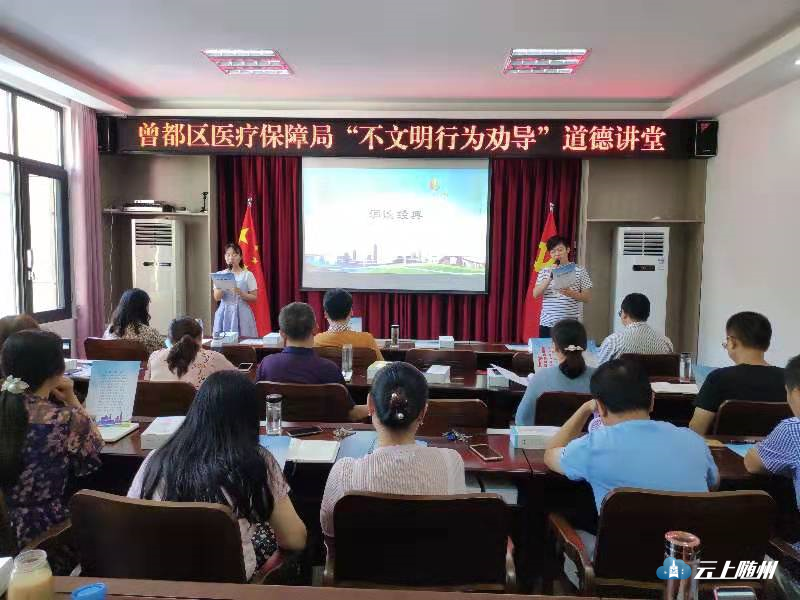 8月2日,曾都区医疗保障局举办了“不文明行为劝导”为主题的“道德讲堂”活动。本期道德讲堂活动在主持人对五千年的中国文明史的讲述中拉开了序幕。
