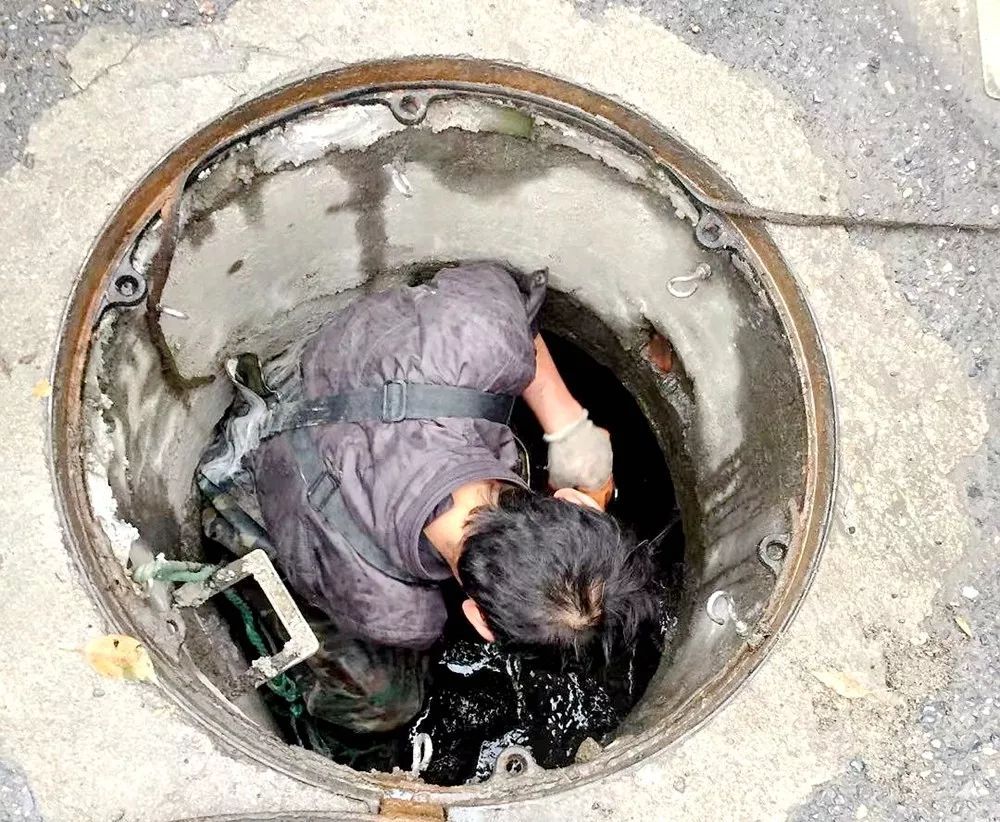 在一处清淤现场,随着管道内淤泥不断被水流冲出,一阵阵难闻的气味也从井底散发出来,排水工们站在井口,一面拉动高压管,一面观察井内状况,丝毫不被恶臭影响。