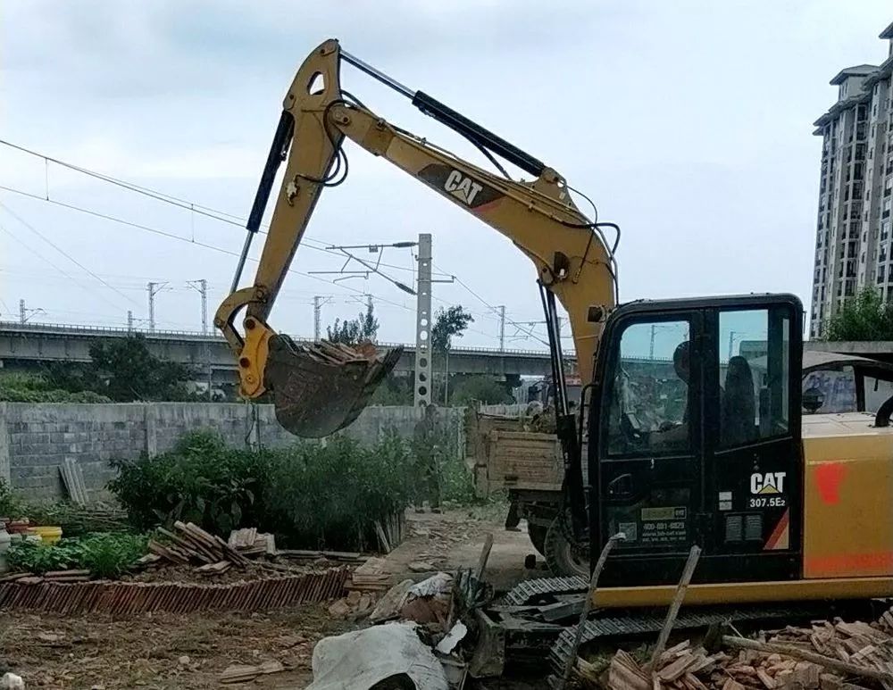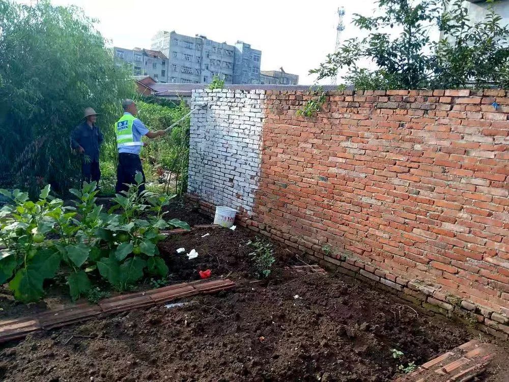 尚市镇涉及铁路沿线的有余村和净明铺村正在拆除沿线违章建筑物和对墙体立面进行刷白。