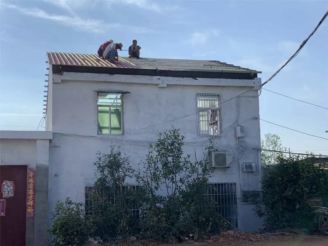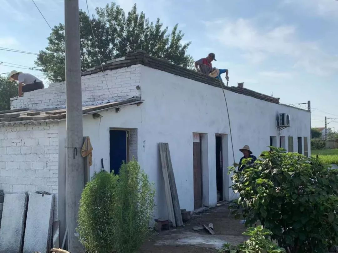 8月3日,六草屋村组织48人,动用高空作业车辆3台,喷涂机3台,挖机1台, 铲车一台, 大型翻斗车2辆,垃圾清运车7辆,转运檩杆120根,瓦条55捆,瓦板2160块,琉璃瓦10000块,脊瓦280块拆除乱搭乱建4处,清理沟渠50米,清理垃圾杂物10吨。