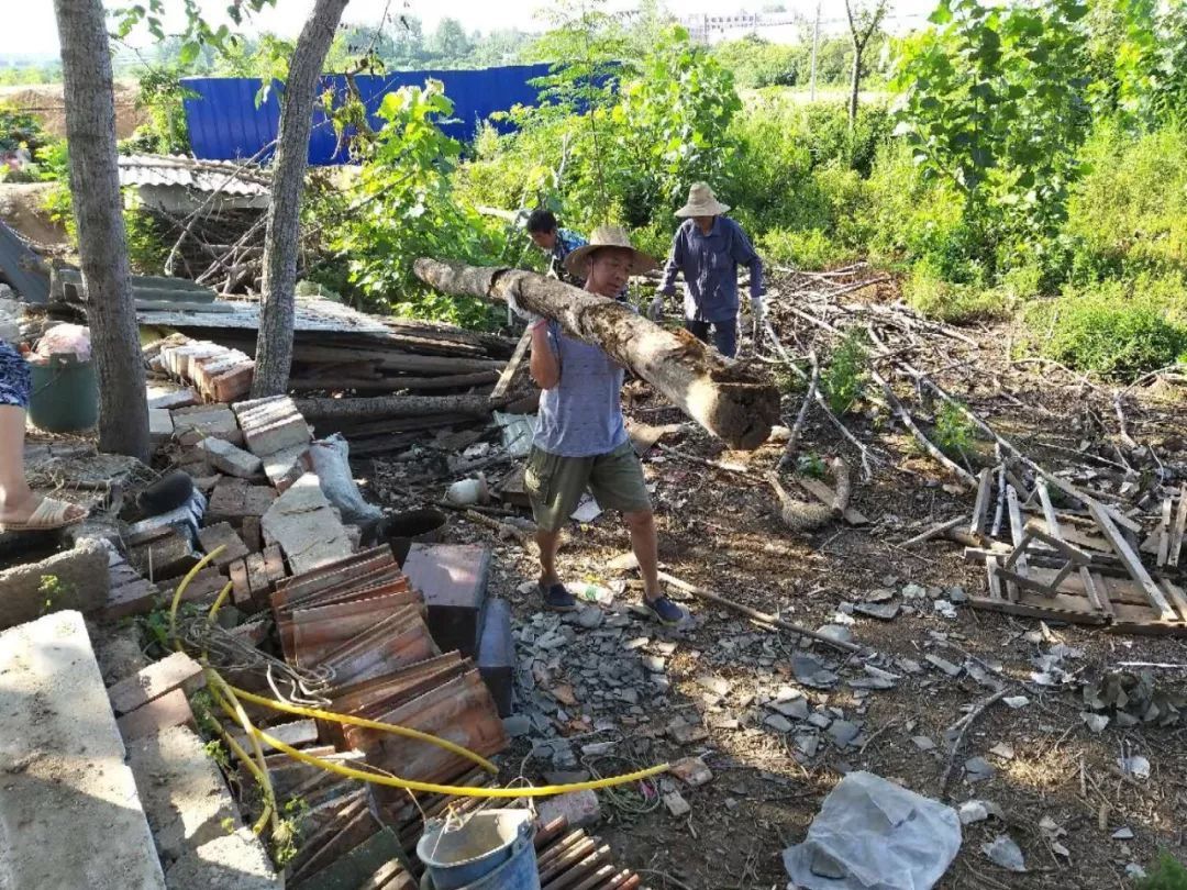 8月3日,周家寨村组织25人,动用挖机1台,垃圾清运三轮车1辆,清理垃圾24吨,拆除违规附属房230平米,粉刷墙面360平米。