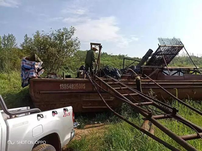 高城镇雷家祠沙场拆除采砂船及安装禁采公示牌。