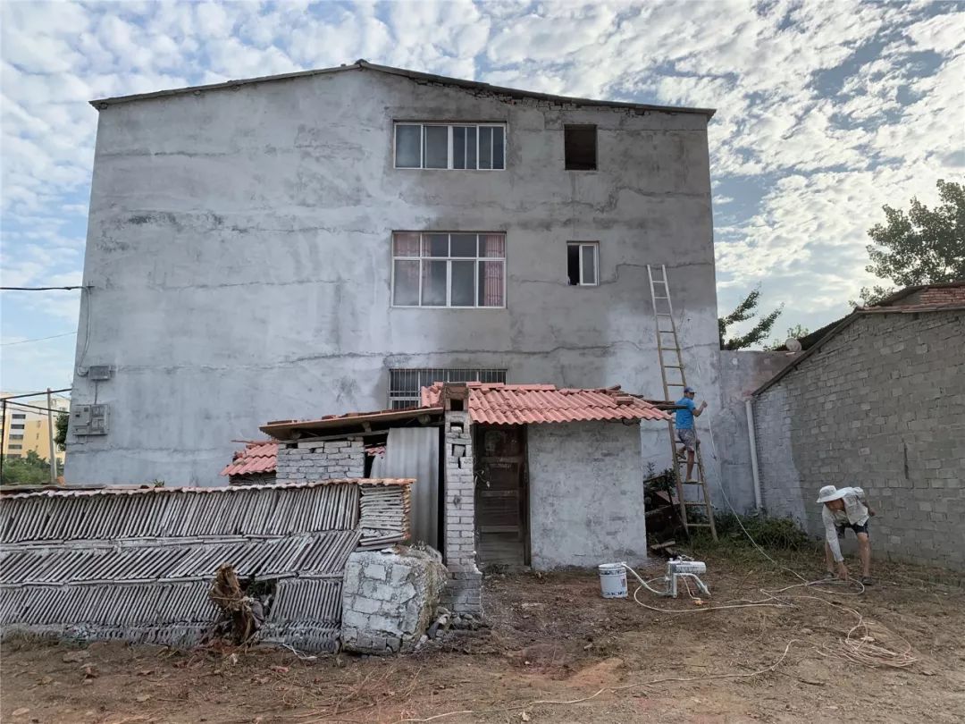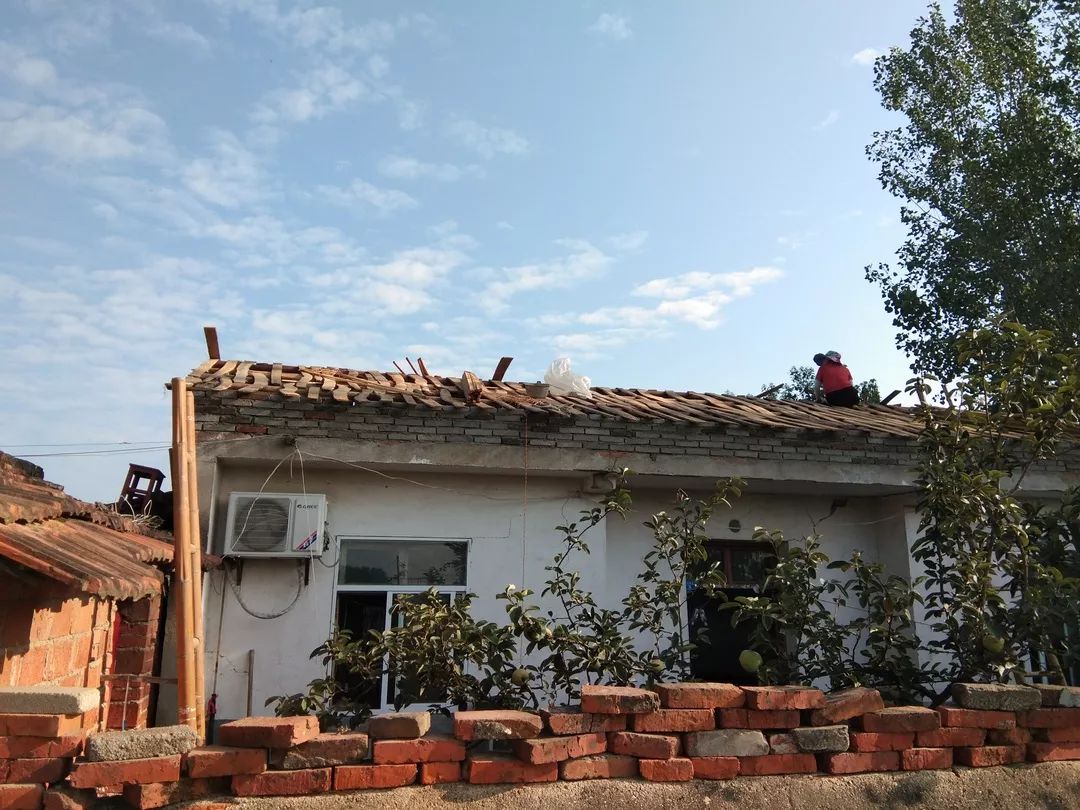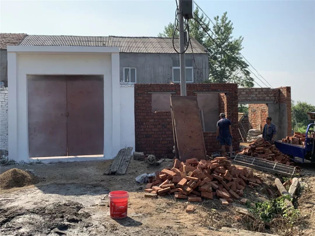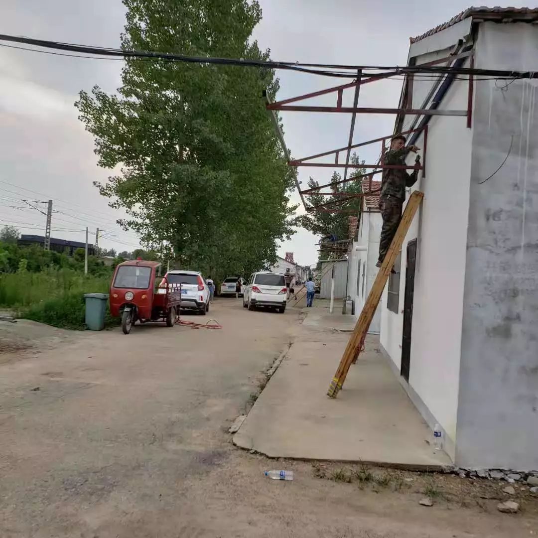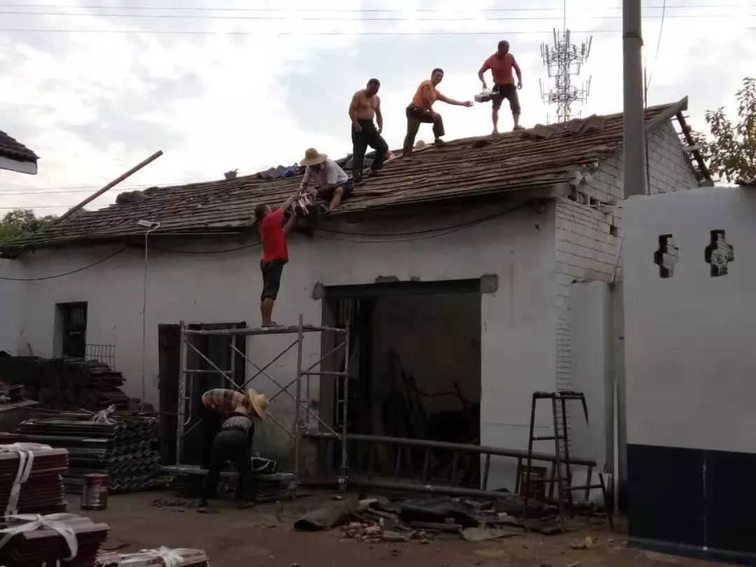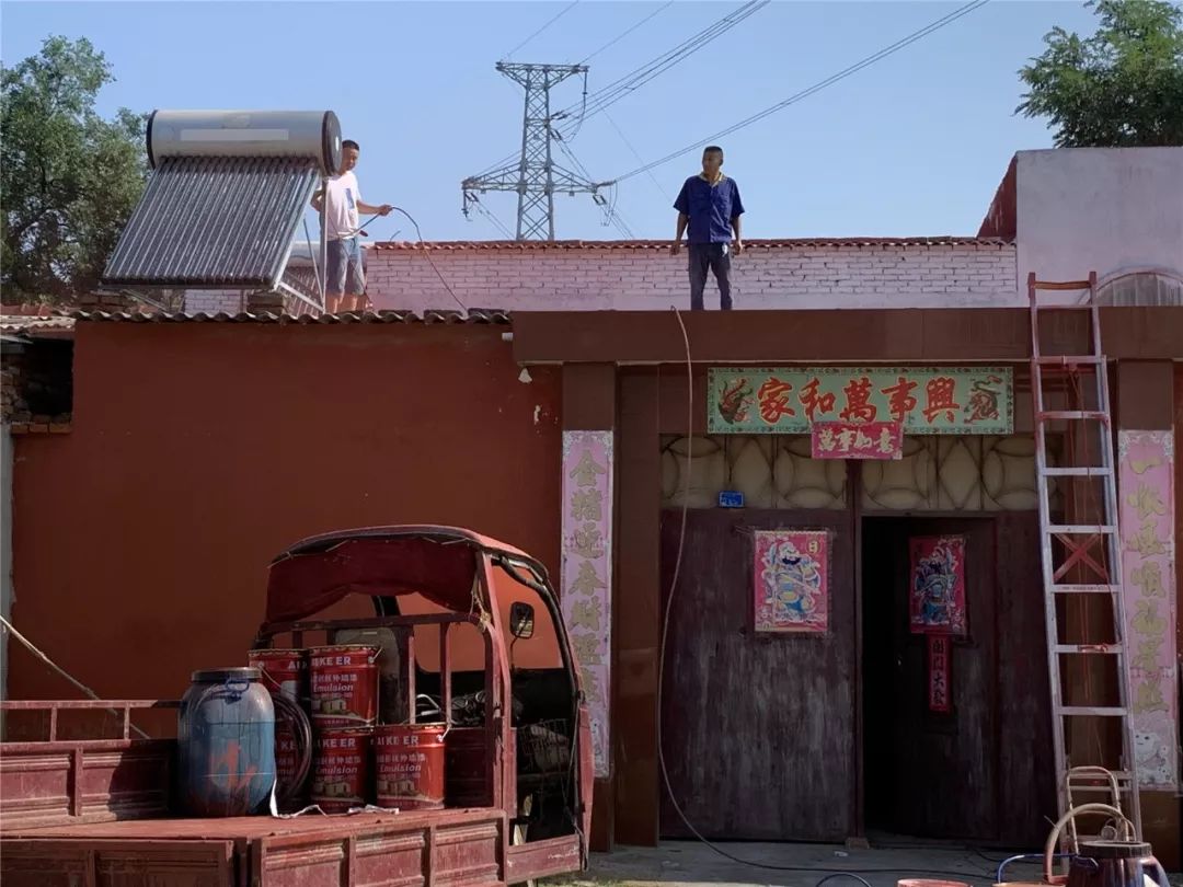 8月5日,六草屋村动用工人28人,出动粉刷机械2台,更换三家屋面瓦,铁路沿线巡回捡拾垃圾,粉刷农户立面墙1295平方米。