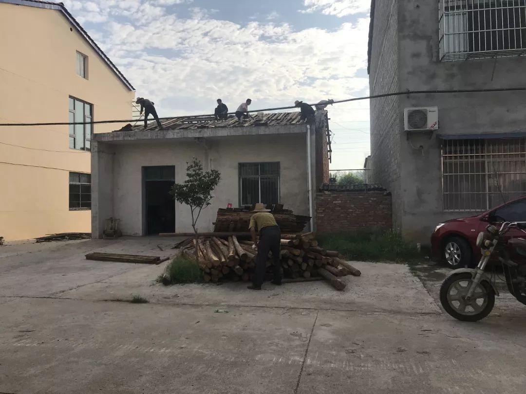 8月5日,七里塘村组织挖机1台,运输车2辆,工人53人,清运垃圾9吨,刷白墙壁300平方米,刷红屋顶300平方米,农户换瓦100平方米,拆除乱搭乱建1处。