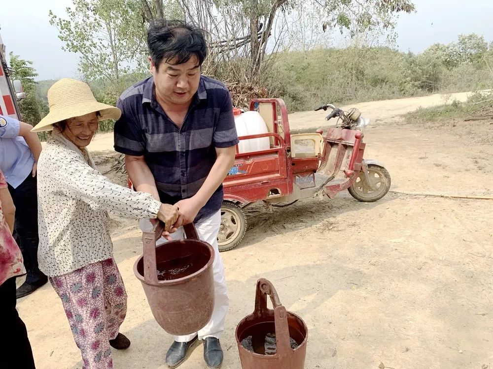 每到一个送水集中点,党员干部和年轻力壮的村民都抢着帮年老体弱的村民拿水桶和提水,经过一下午的努力,共为双稻香村30户82名村民送去急需的饮用水。