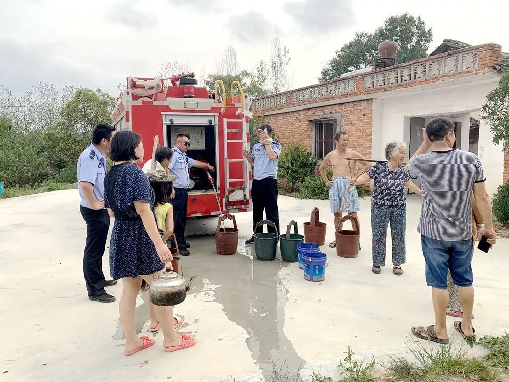 连日来,由于持续高温少雨天气和地理位置原因,导致唐县镇双稻香村出现严重旱情,村民饮水困难。日前,该镇政府、派出所、卫生院组织党员干部,调用消防车,把一车车“救命水”送到村民家门口,缓解村民饮水难题。