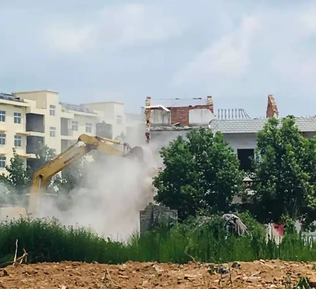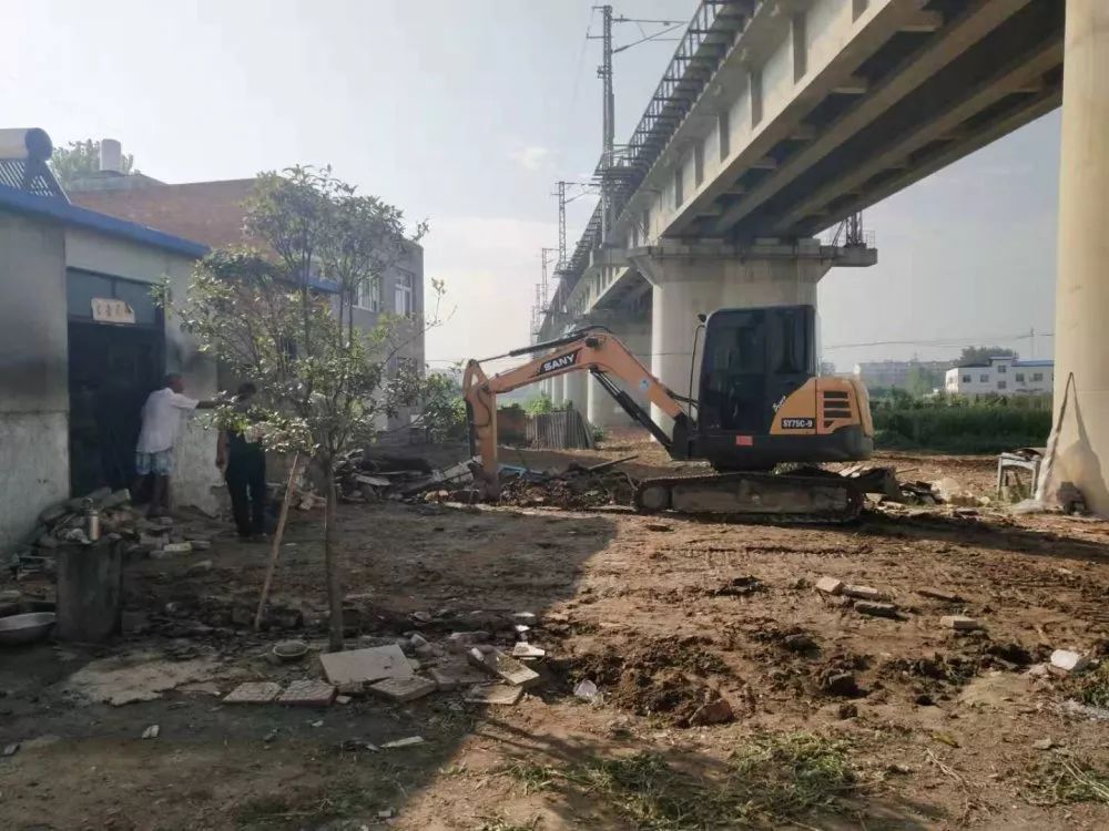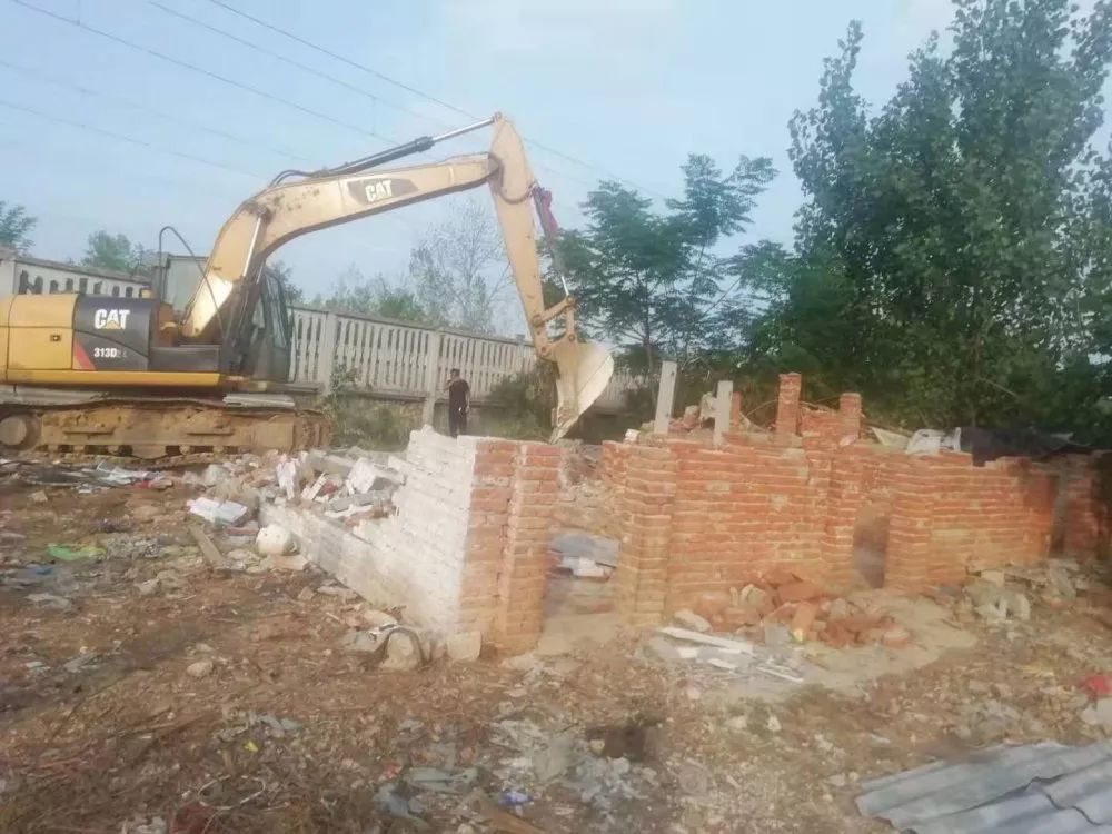 厉山镇大力开展铁路沿线环境卫生整治工作,拆除违规建筑。