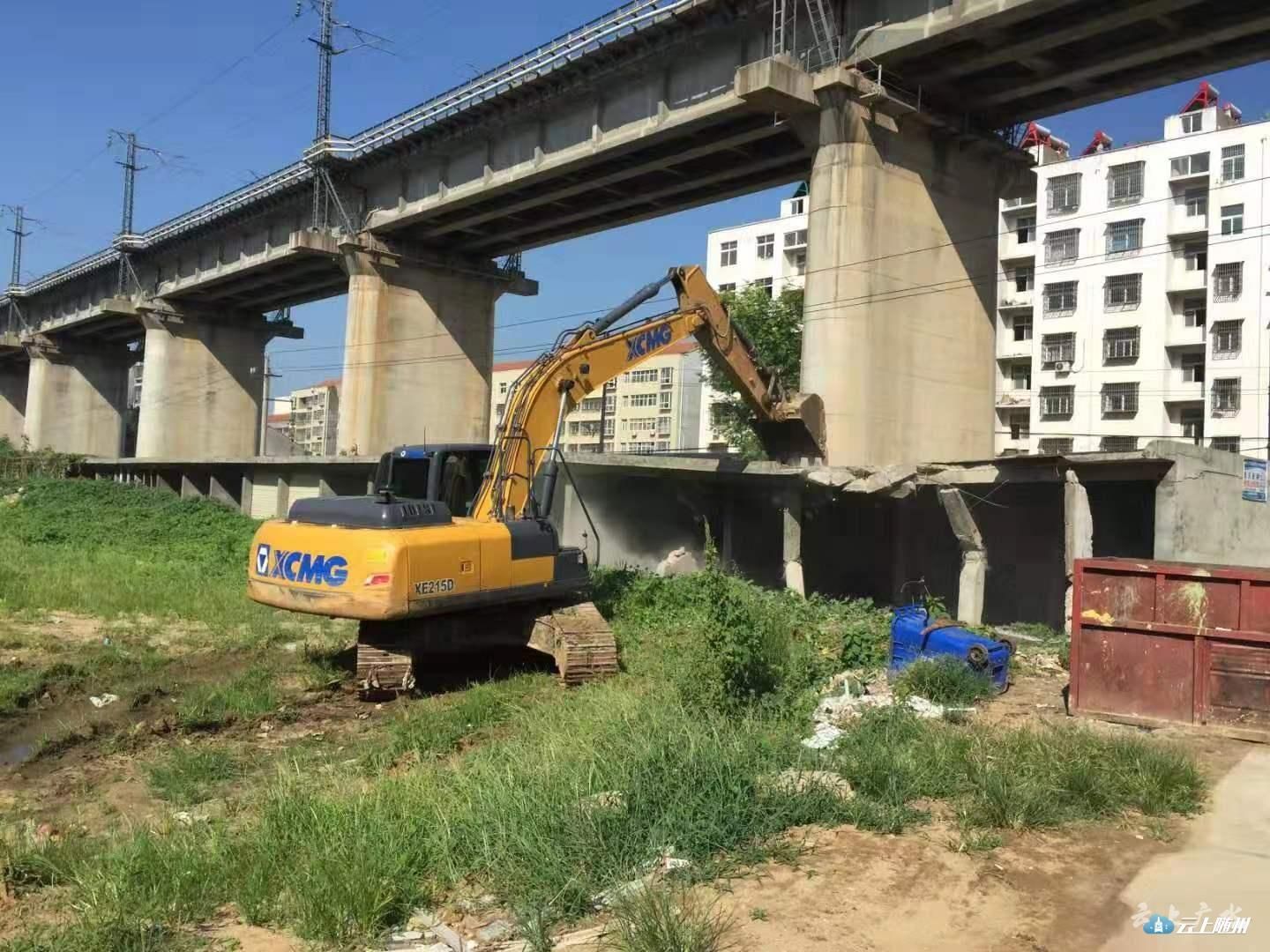 此次联合执法共出动挖掘机3台挖掘机进入现场进行大面积拆除。目前,已对武阳社区影响铁路安全的1栋2间2层的房屋进行了拆除,拆除了铁路周边乱搭乱建的活动板房和彩钢瓦棚50间、非法占地私建的车库和房屋112间、围墙300米,地面菜园清表12000平方米,已清运建筑垃圾6000余吨,土方回填2000余吨,粉刷墙体立面4处。开发区、武胜关镇已与市规划设计院联系,近期由该院派专家对已清理出的空地进行规划设计,让周围群众能有一个休闲活动的场地,便于长效管理。楼楼子冲村已拆除破旧房屋16间、旱厕8座、地窖12处,墙面粉刷800平方米,包护坡500平方米,清运建筑垃圾56吨。孝子店村拆除废旧机械设备1套、活动板房2处4间、简易砖混结构房屋5处约400平米米,清运废石渣料2800吨。