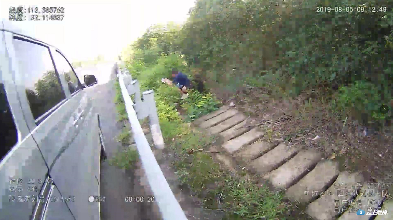 当民警走近面包车检查时居然发现车内空无一人,原来,司机因为拉肚子,独自一人蹲在护栏外的草丛中,见民警到来,司机有些不知所措,为避免尴尬,民警在面包车前后进行安全警戒。