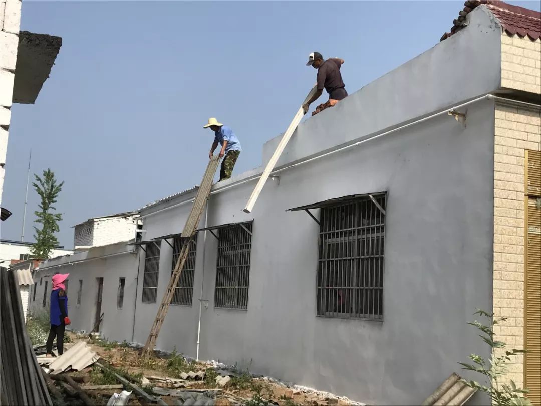 8月9日,六草屋村动用大型吊车1辆, 运输车1辆,人工32人, 农户屋面换瓦250平方米,粉刷墙面2764平方米,清理沟渠500米,清理杂草垃圾14车。