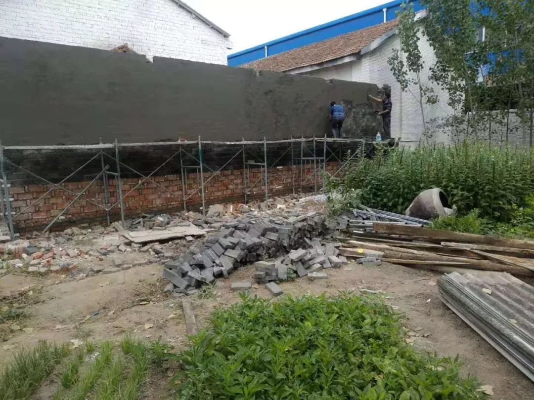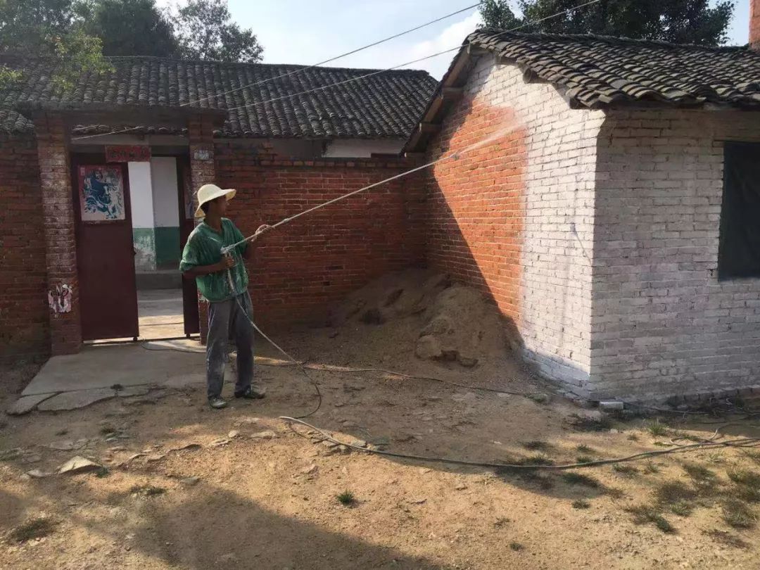 8月10日,周家寨村聘请人工33人,高空作业车3辆,挖机1辆,运输车1辆,清理垃圾43吨,粉刷墙面5000平方米,整场地350平方米。
