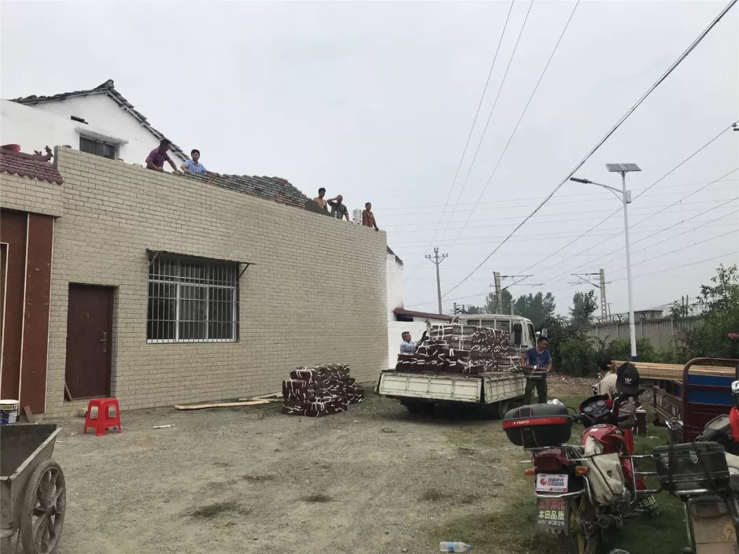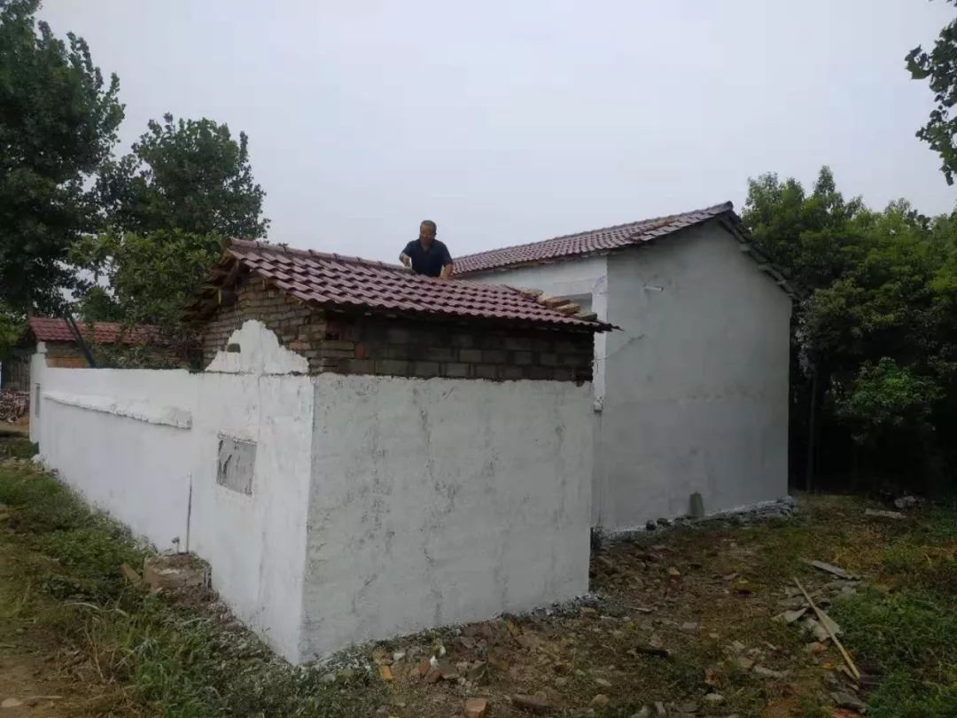 8月10日,六草屋村动用大型吊机一台,工人39人,墙面基层处理428平方米,粉刷墙面4577平方米,换屋面瓦770平方米,清理垃圾26吨。