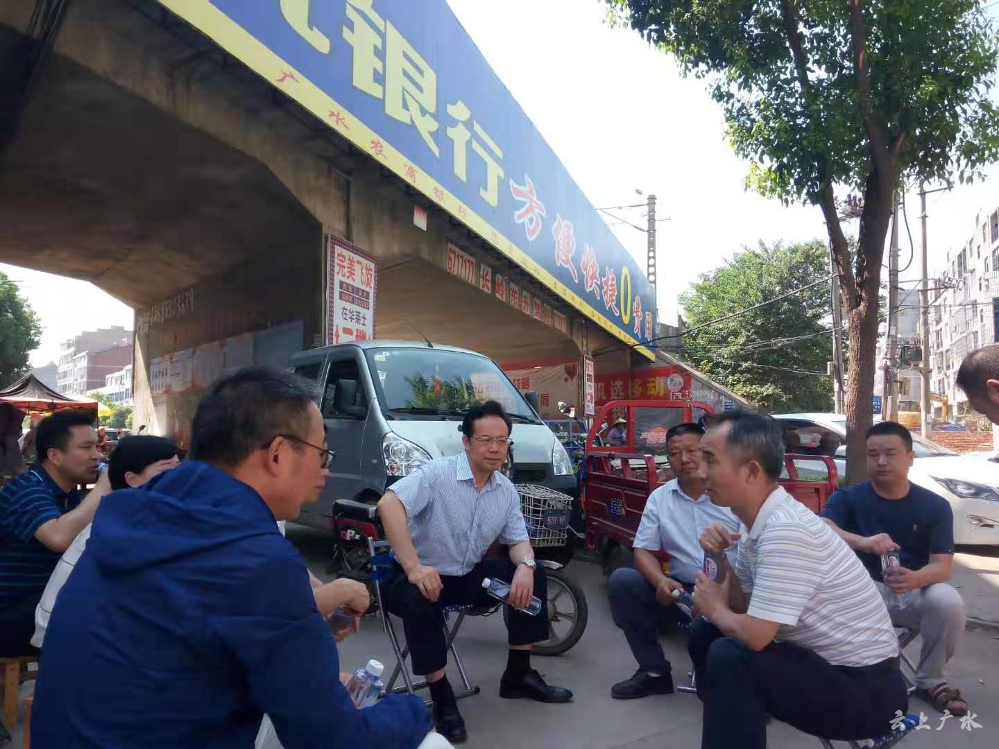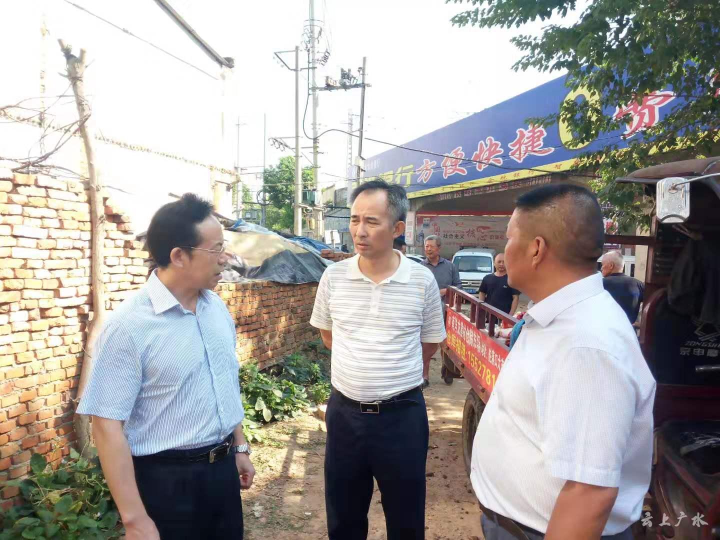 在广水市市委常委,宣传部长刘伟的陪同下,陈德贵来到长岒街铁路立交架环境整治现场,详细了解违建拆除,垃圾清远以及房屋粉刷等工作进度。