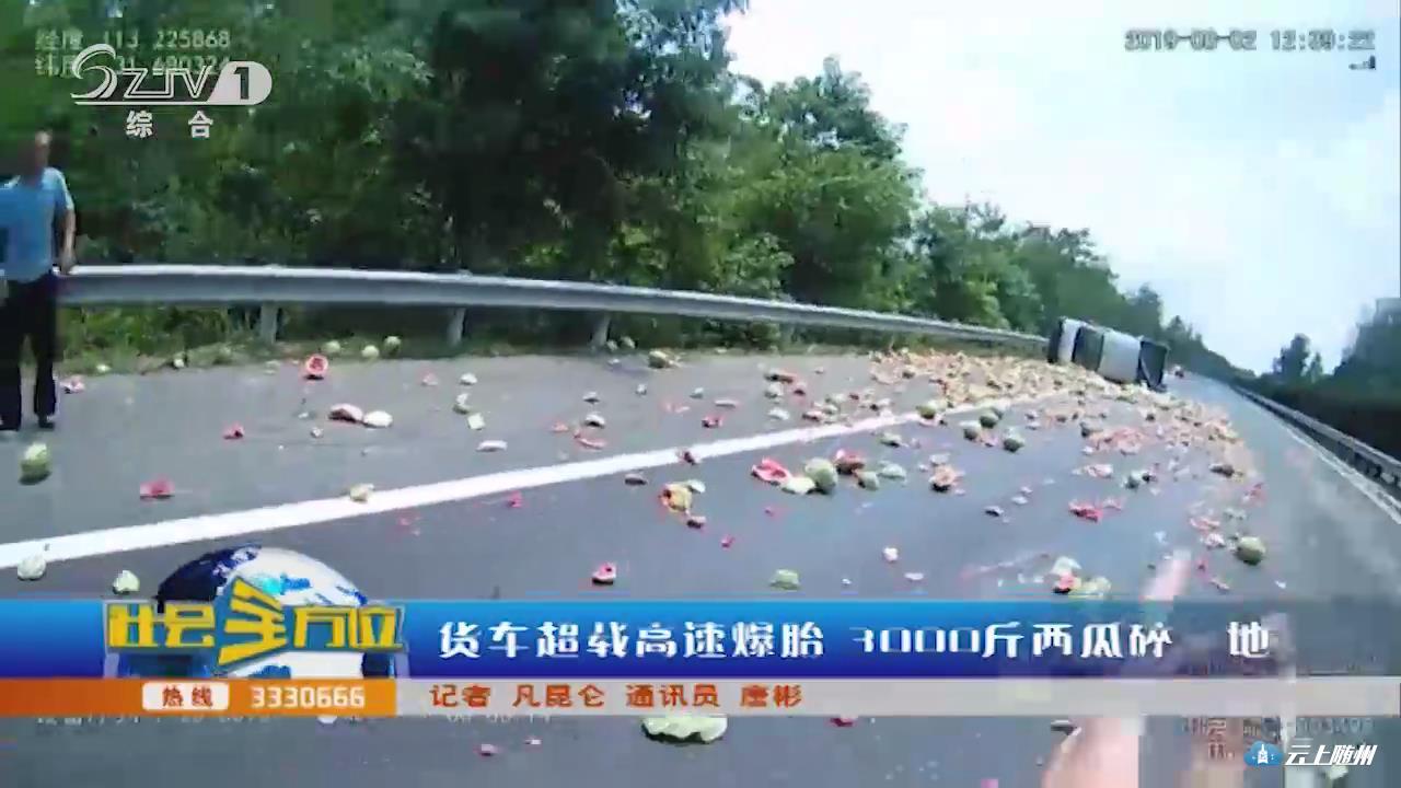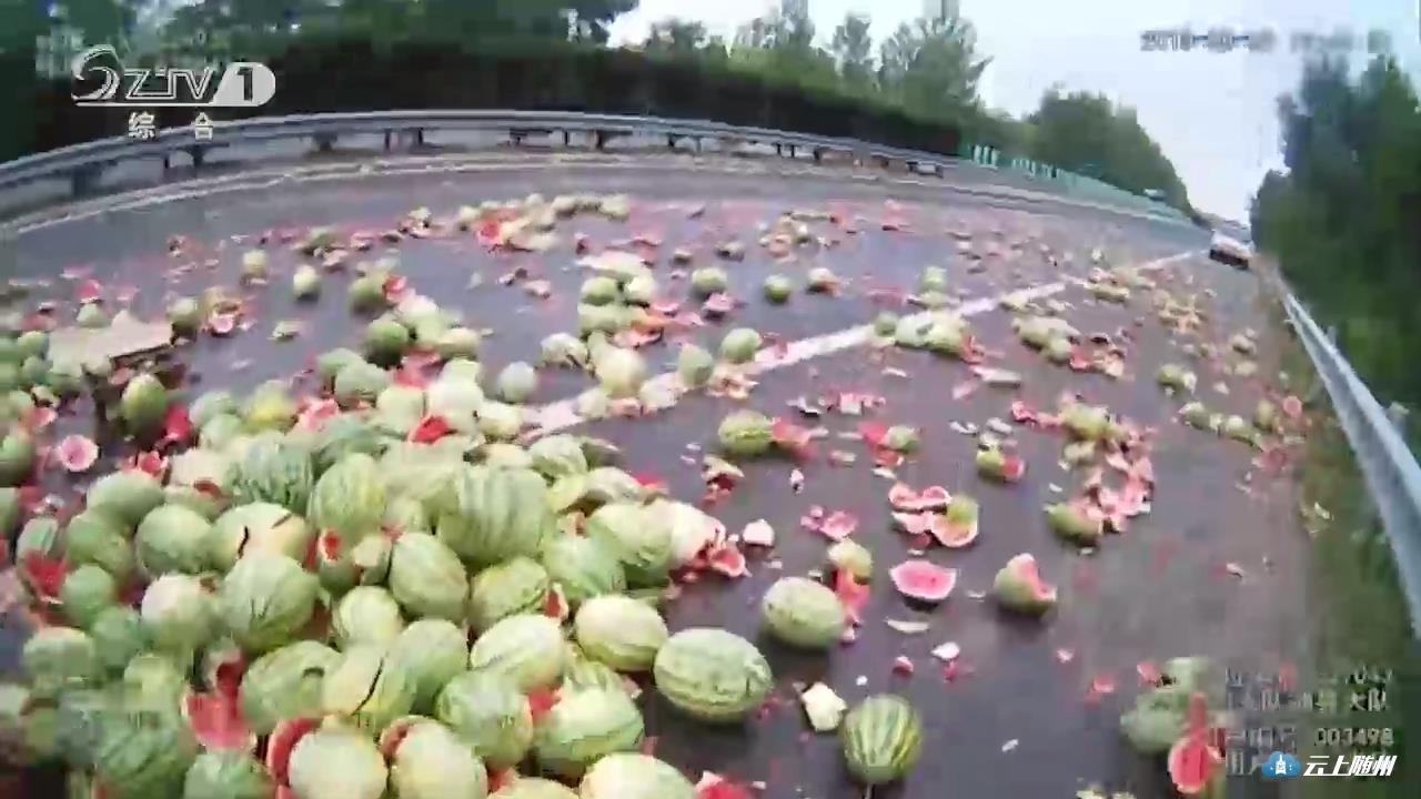【同期声】主要是拉西瓜,因为天气热,再加上绿色产品不,拉少了不要钱邮费就多一点,然后就超了一点。温度太高了。然后车胎就爆了。(当时爆胎你采取了什么措施)我踩了刹车,方向盘没有把握住,它就侧翻了。